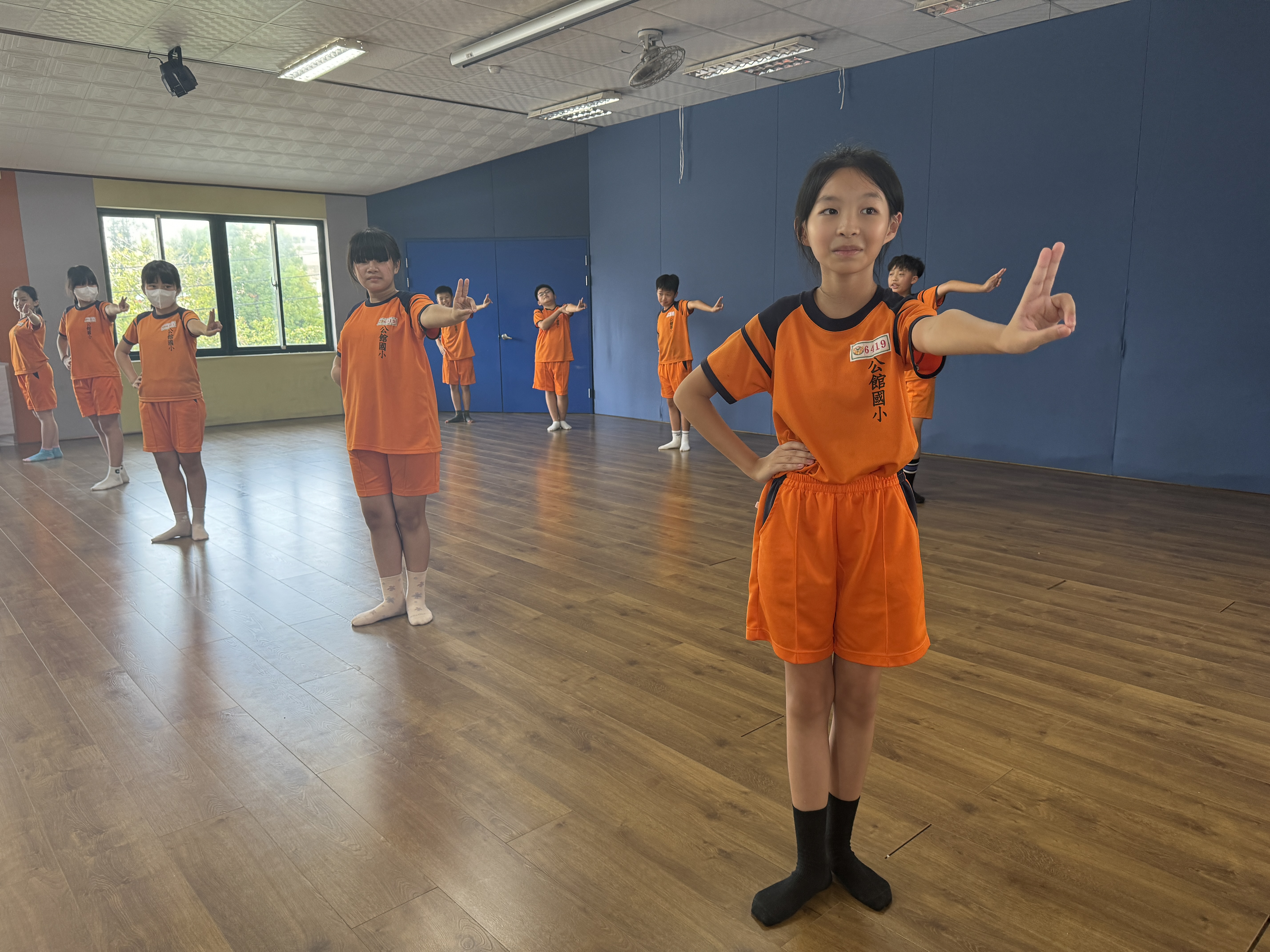 動態課程從基本功開始,無論是踢腿、山膀、雲手、站子、飛腳等身段,學生都學的有模有樣,上課態度積極,後續還加入毯子功訓練(例:拿頂、前滾翻等),所有學生對動態體驗課程較感興趣,相較於靜態知識型課程,學生多數對於基本功、毯子功的參與度更為積極。
