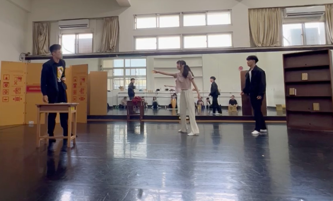 於期末進行小組戲劇演出,要求學生整合角色塑造、衝突展現、空間運用及聲音表達,完整呈現劇本片段。