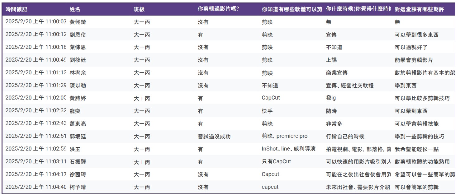 - 技術操作能力:原先近半數學生無剪輯經驗,經過系統性學習後,能夠熟練操作 CapCut 進行剪輯,運用字幕、轉場、特效、旁白與音樂等多種技術元素,製作出具有完整敘事與視覺效果的影片作品