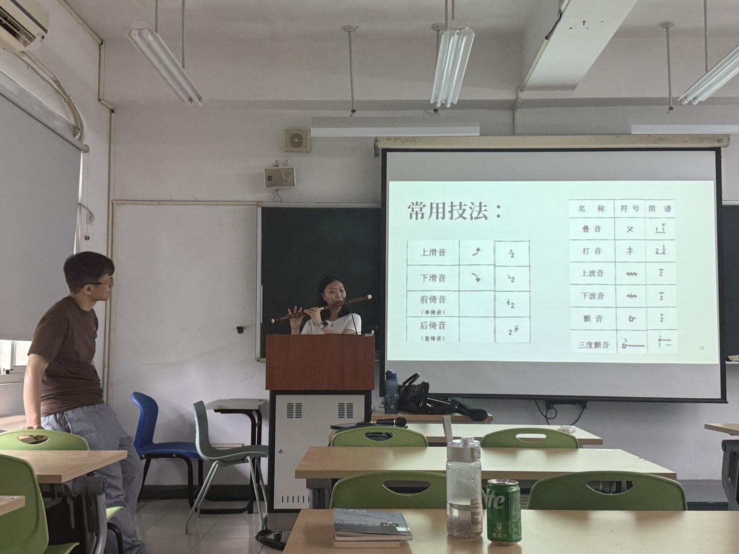 圖四說明:請主修”曲笛“的同學,示範笛子技法,讓同學相互交流、學習。