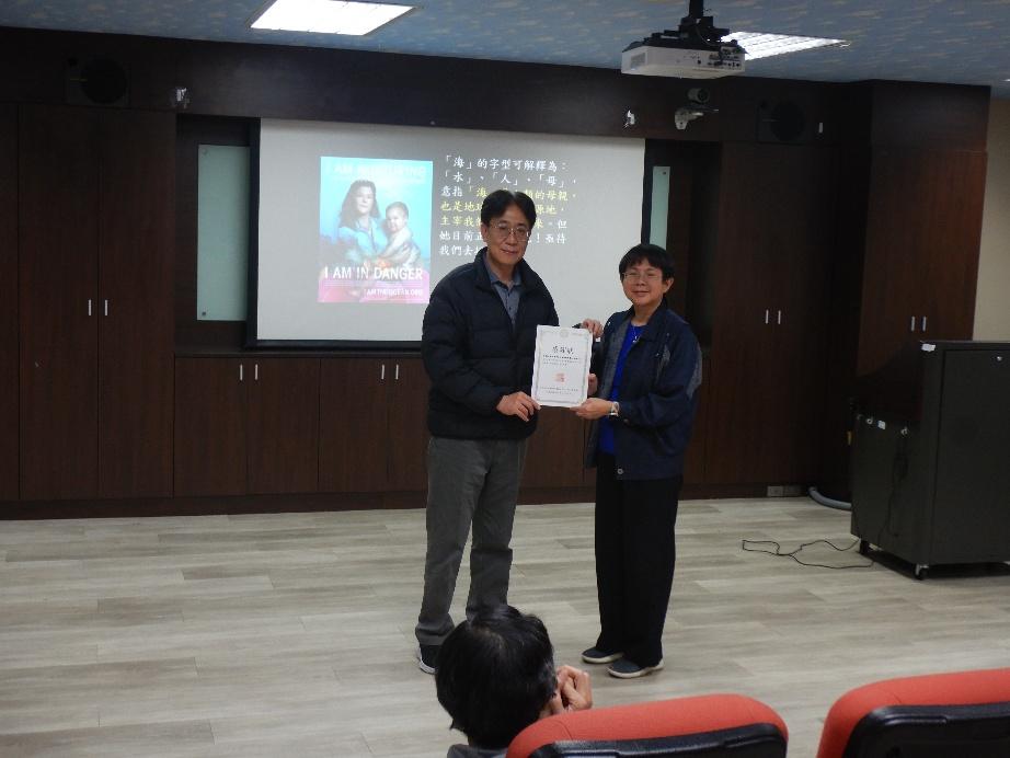 圖四說明:請服務學習老師頒發感謝狀給講師。