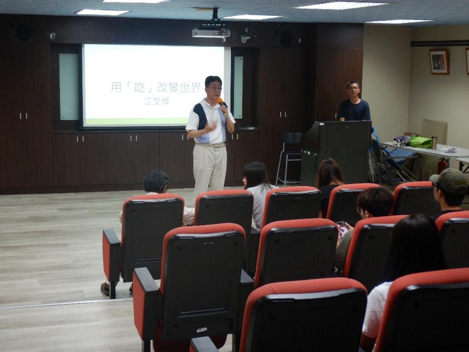 本次演講邀請環境資訊基金會江旻樺老師蒞臨本校來宣導「食農教育」,本次演講讓我們知道「飲食習慣」對生產者及周遭的自然環境造成影響,我們要多多購買低碳足跡且擁有環保標誌的商品,不但可以減少人類對環境的破壞,也可以讓自己吃得健康又安心。