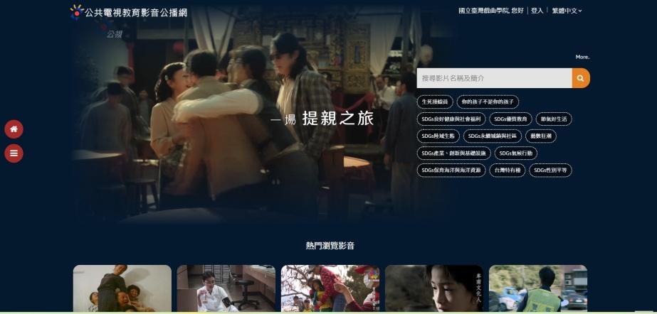 圖二說明:公共教育電視影音公播網首頁,含各項SDGs主題的檢索連結,是培養師生人文素養的優質影音平台。
