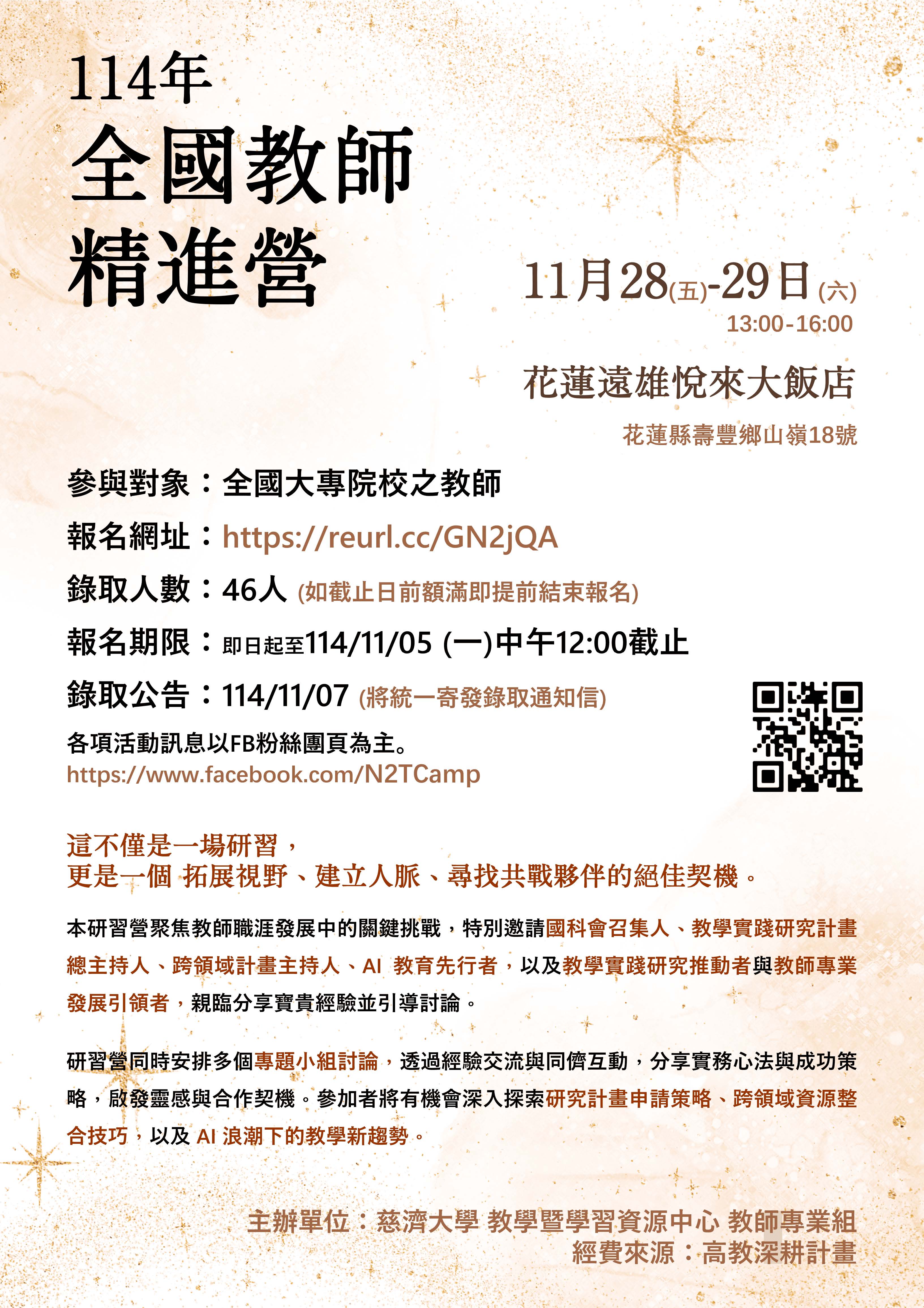 慈濟大學教師發展暨教學資源中心辦理「114年全國教師精進營」活動資訊公告