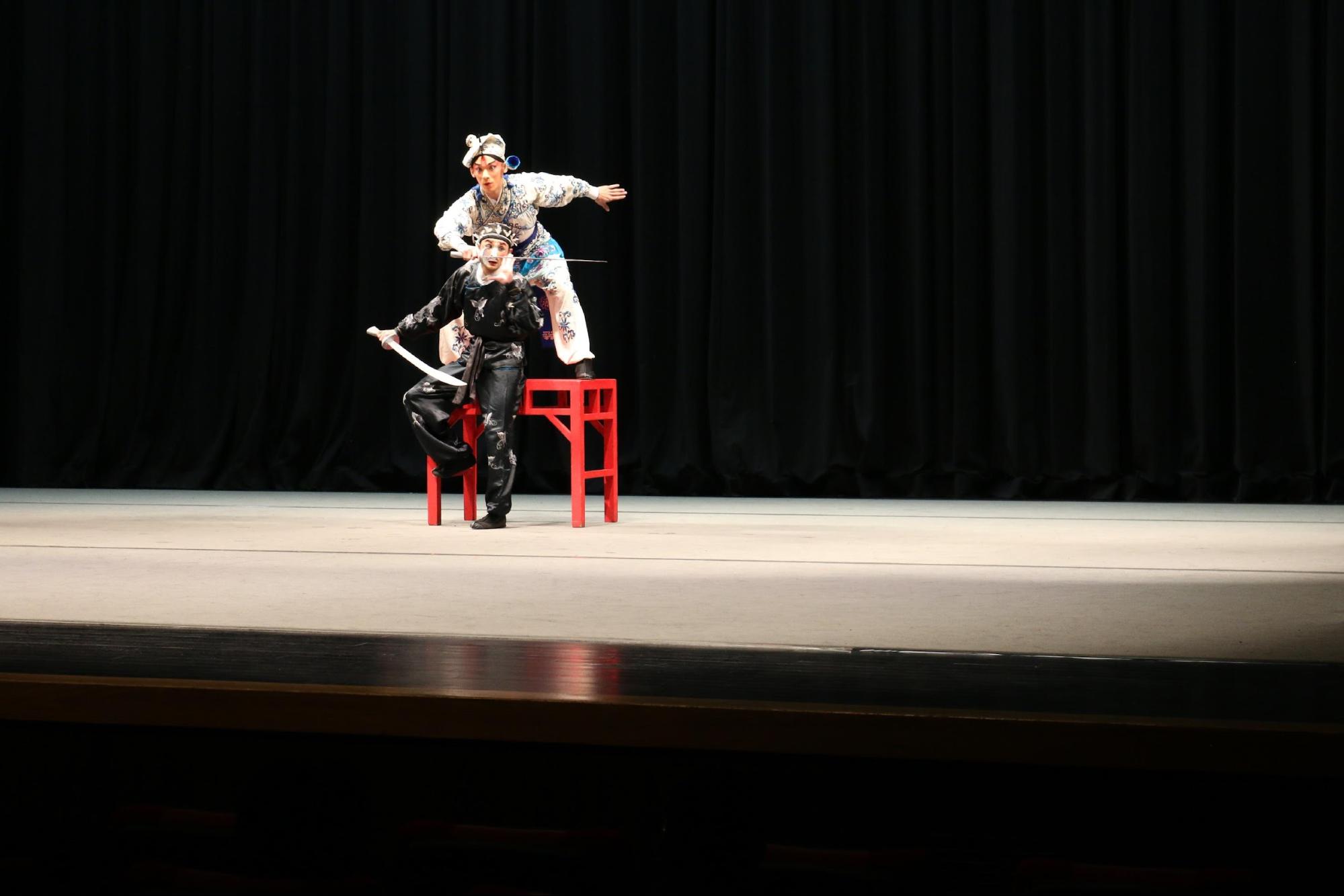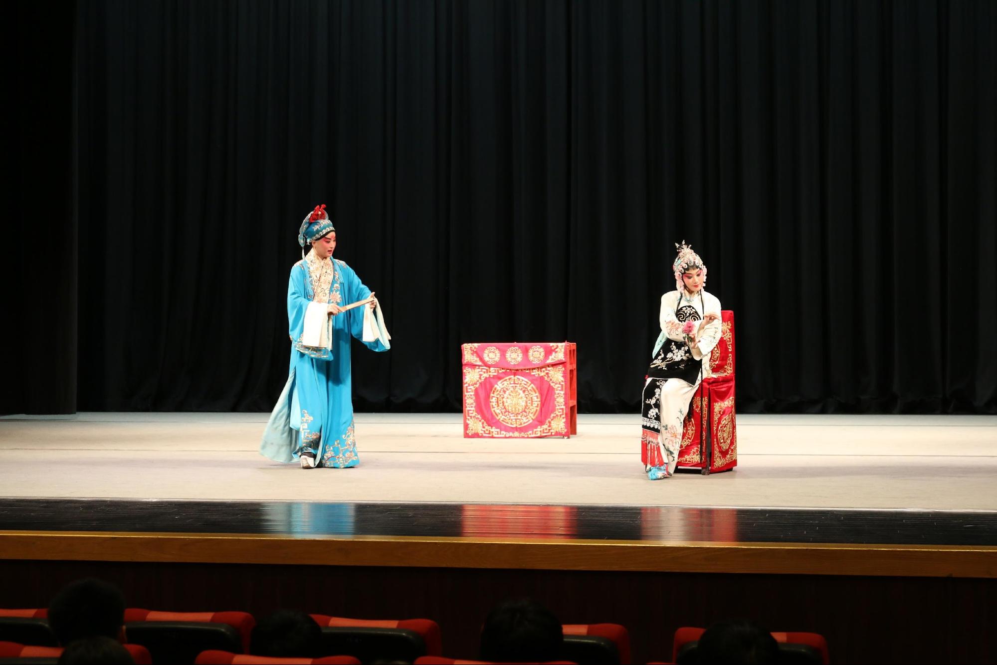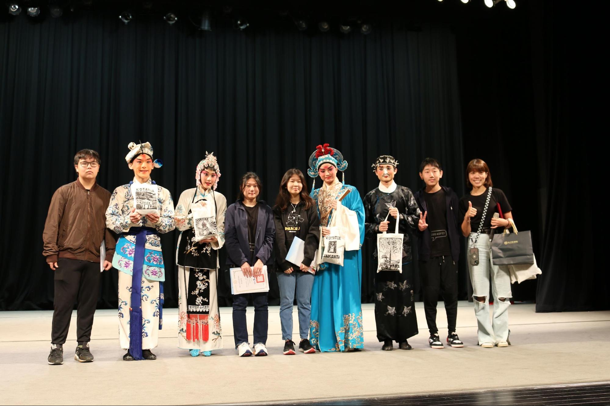 - 來訪學生實際學習雲手、亮相、把子功、體驗水袖等京劇表演動作與道具。尤其是學會欣賞到精采處大力鼓掌喝采,學會此項有別於現代戲劇的戲曲表演特有文化。