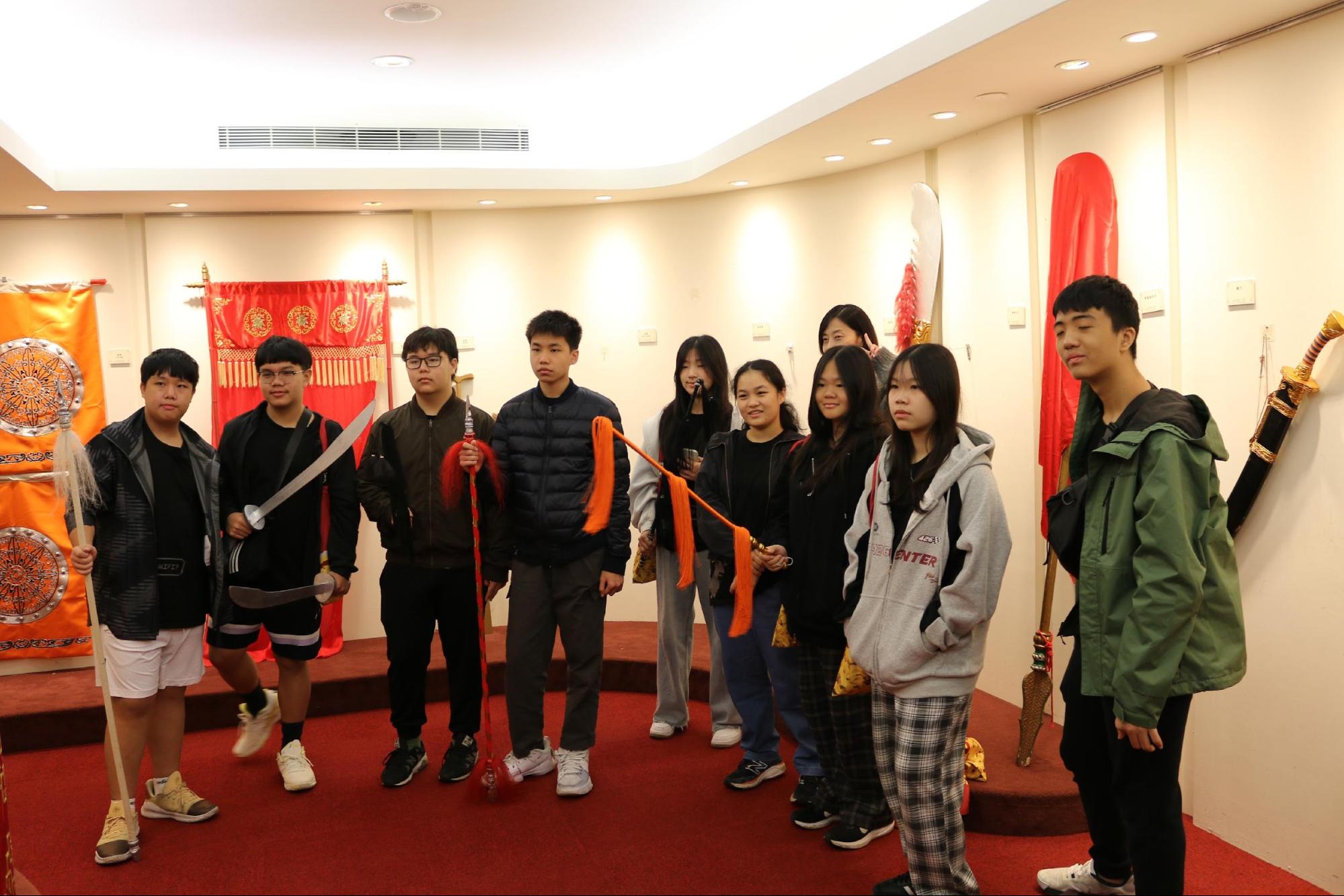 圖四說明:印尼雅加達臺灣學校學生體驗刀、槍、棍、馬鞭等道具。
