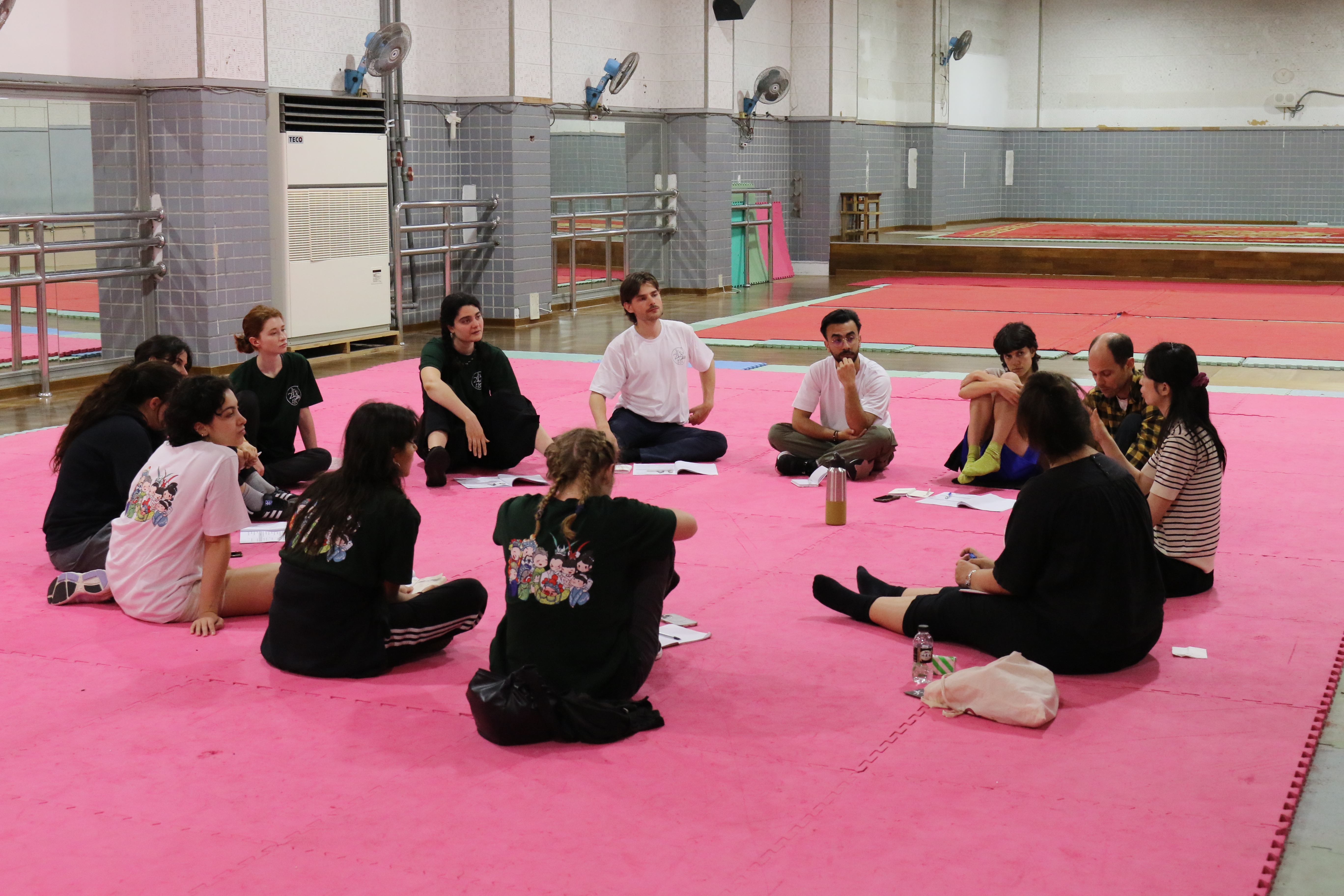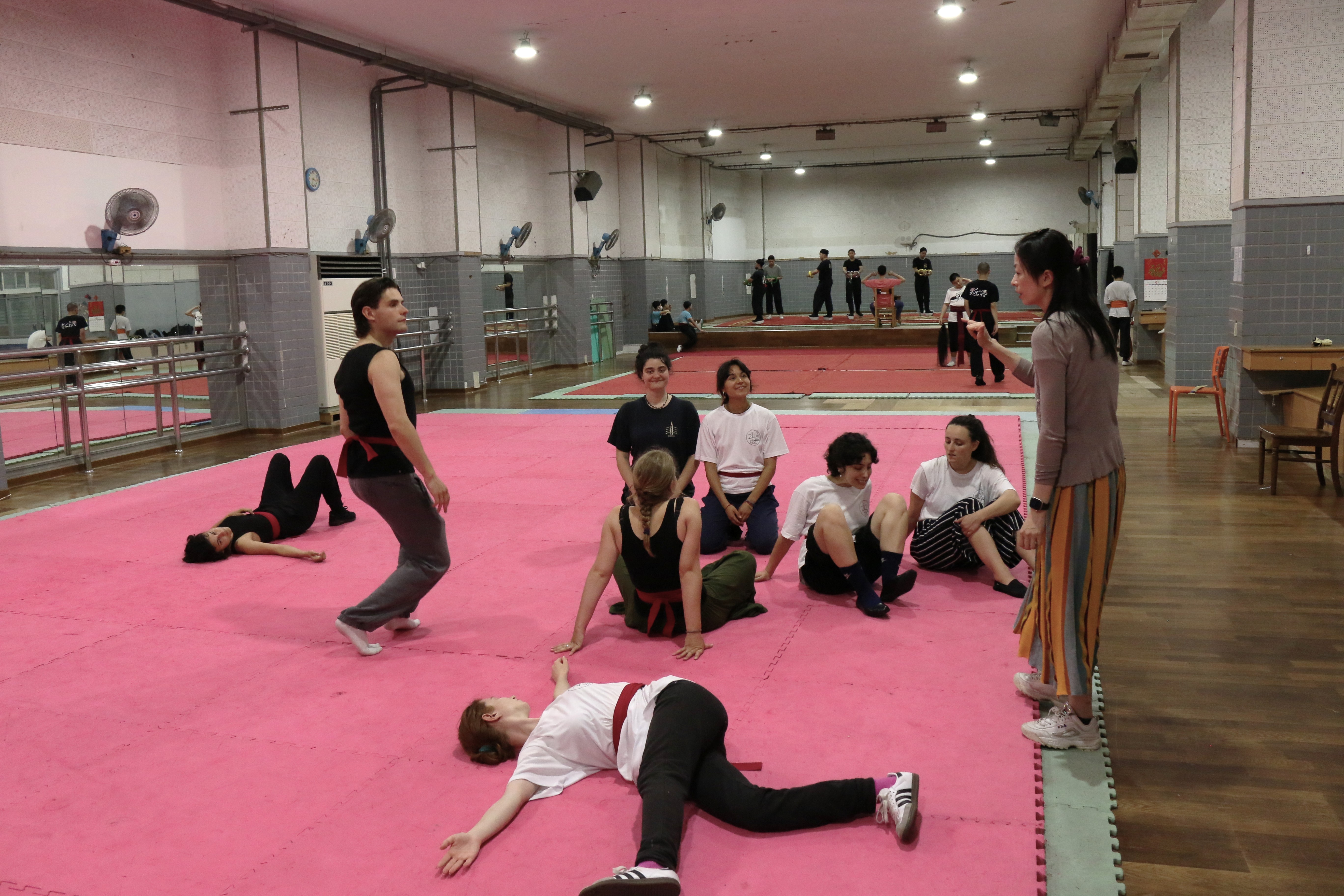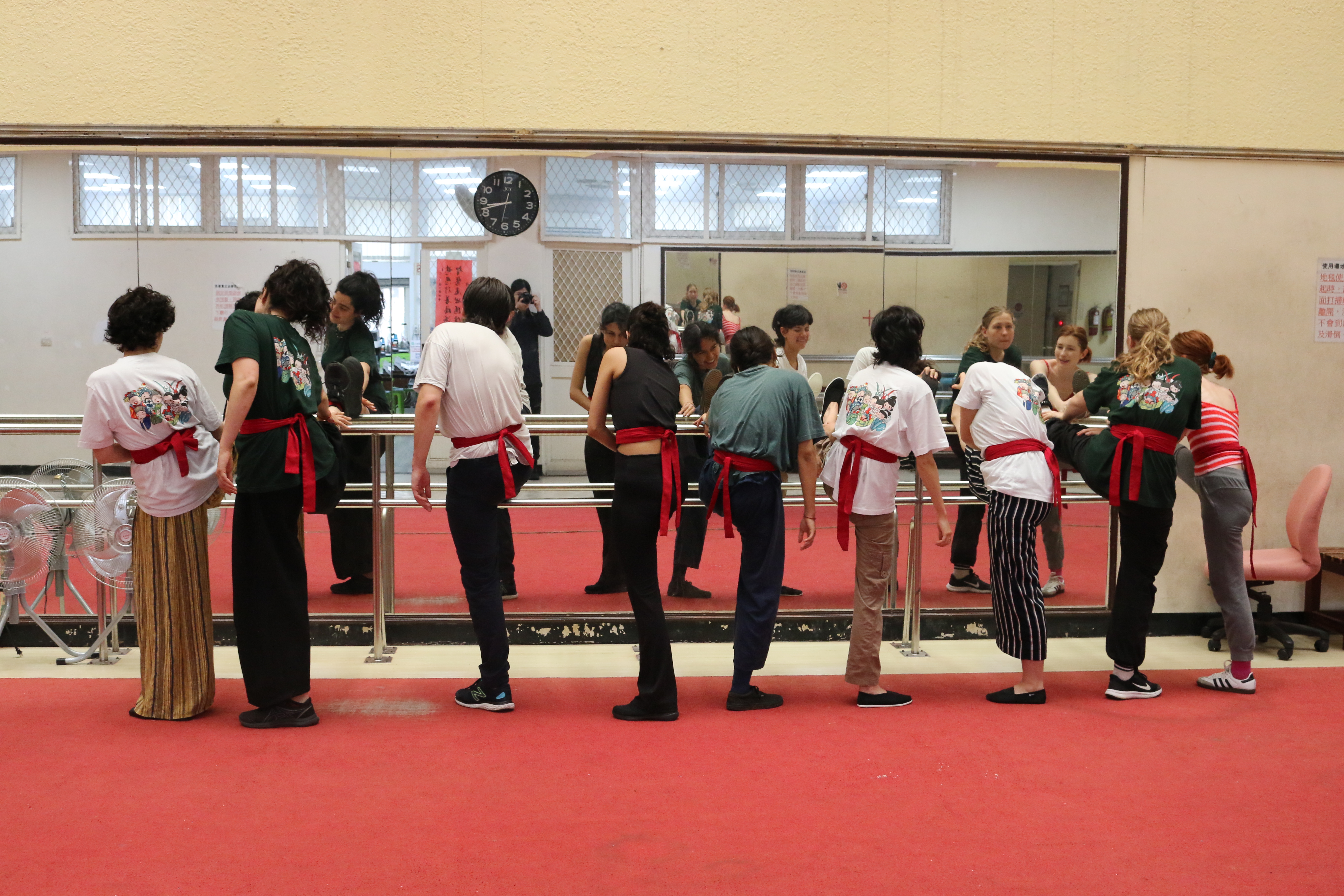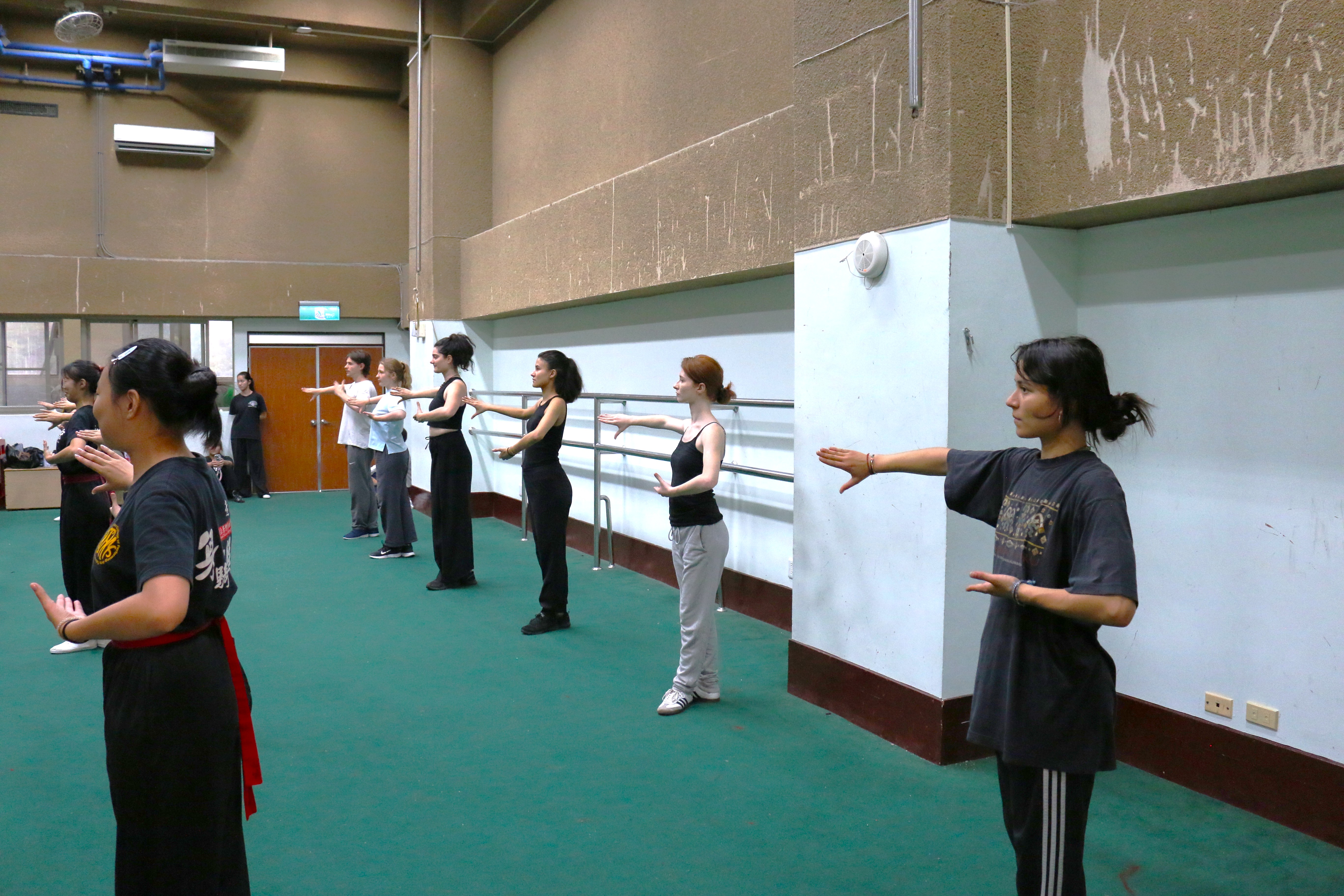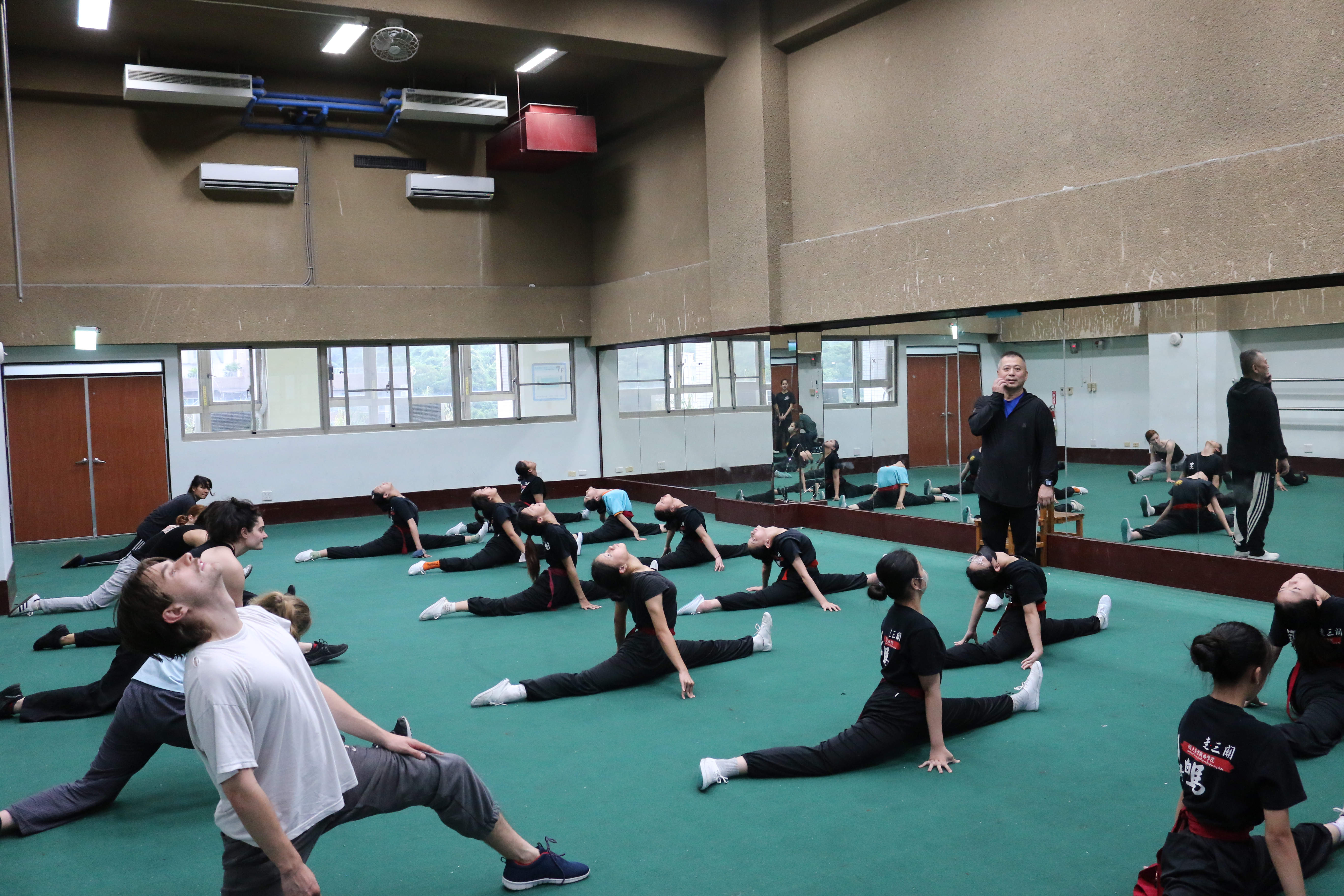 圖五說明:第一天下午法國學生持續練習壓腿暖身。