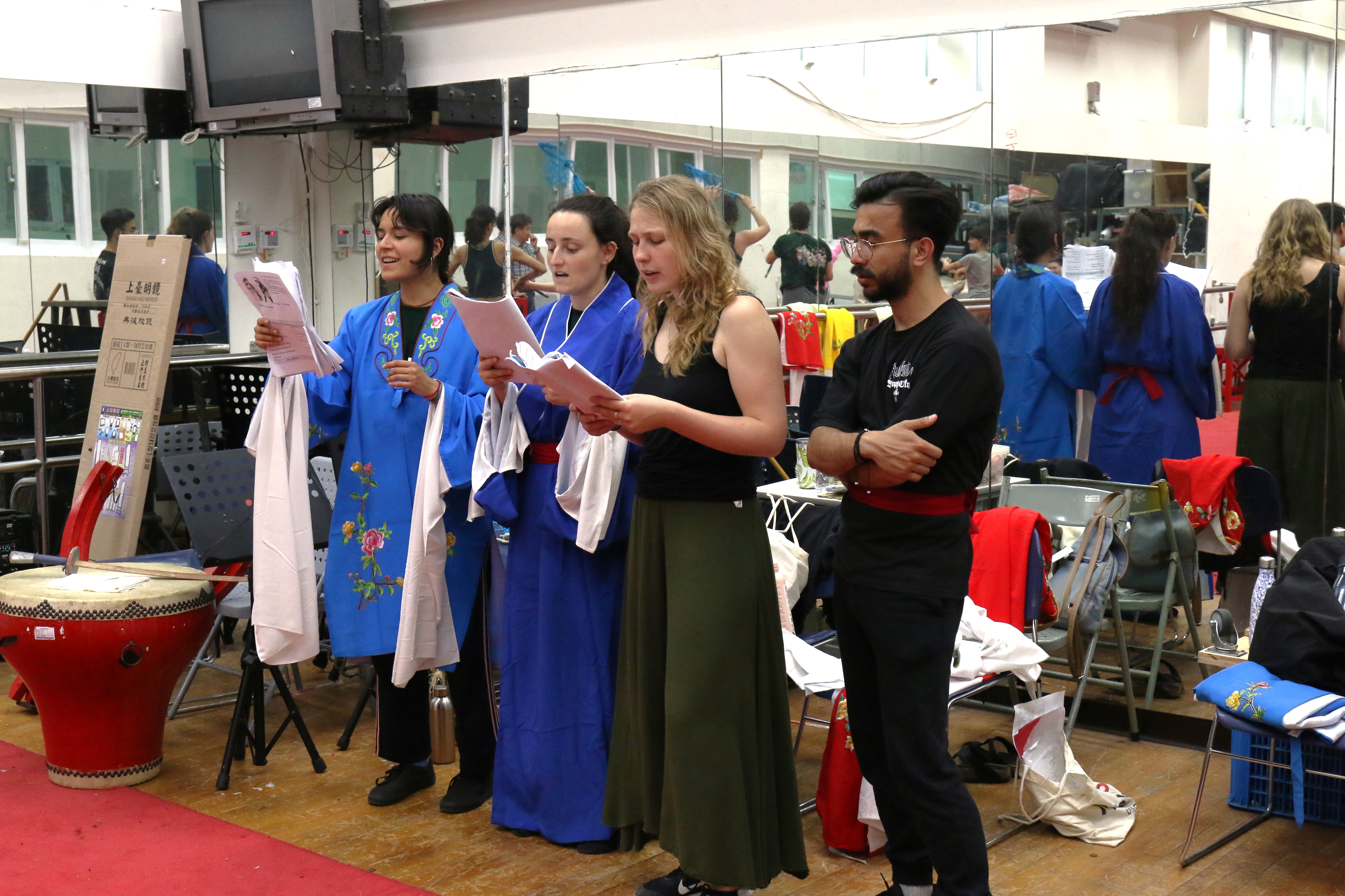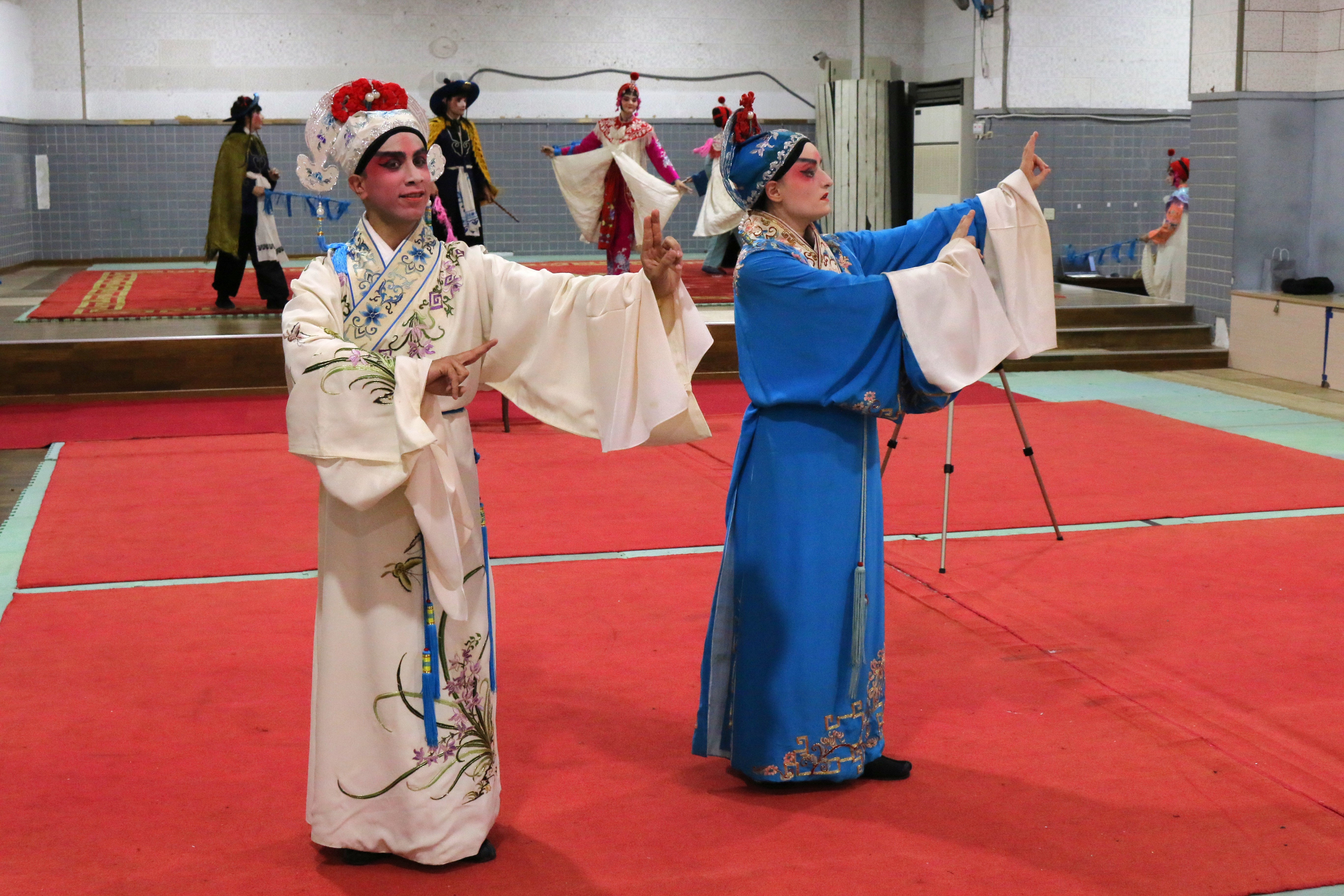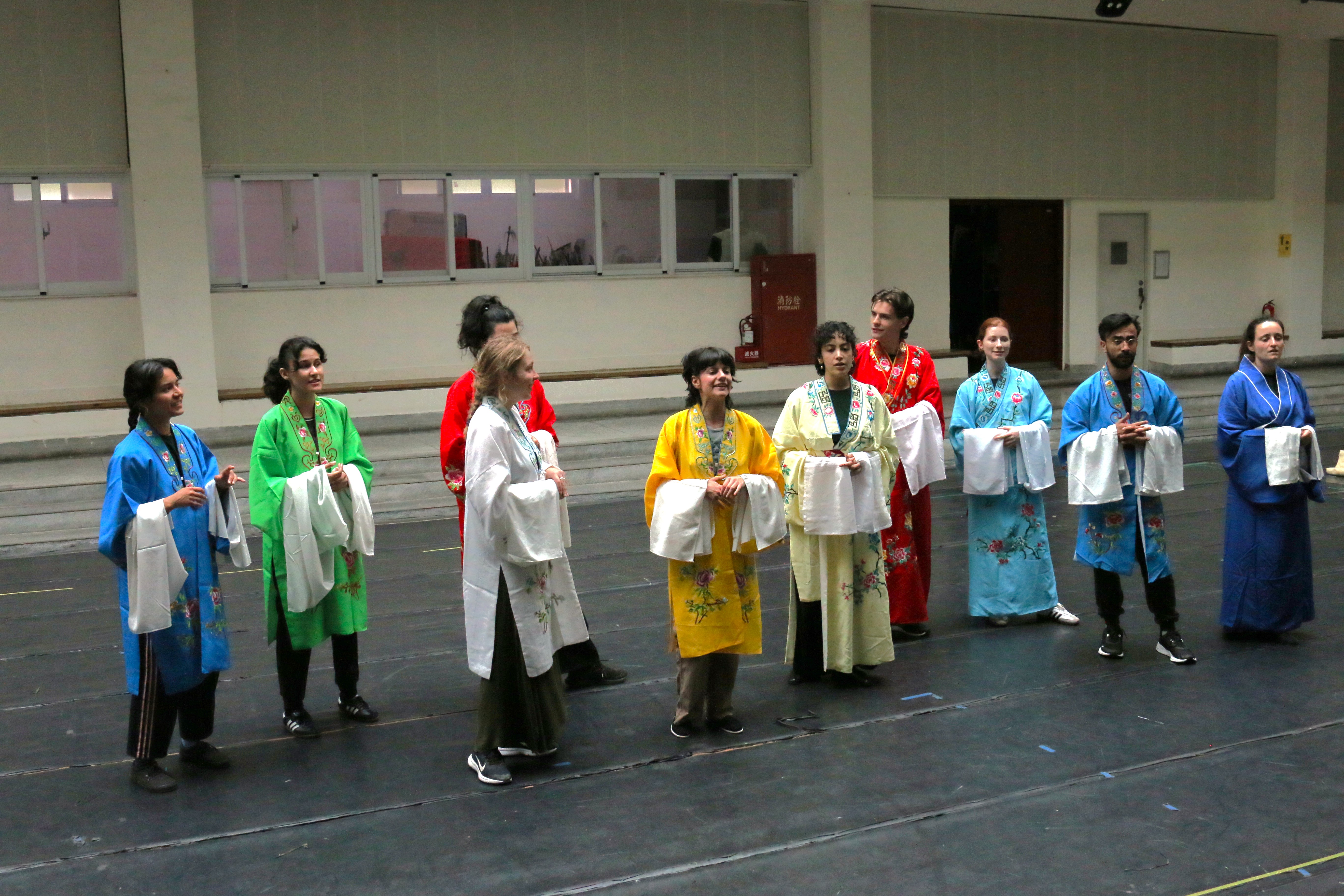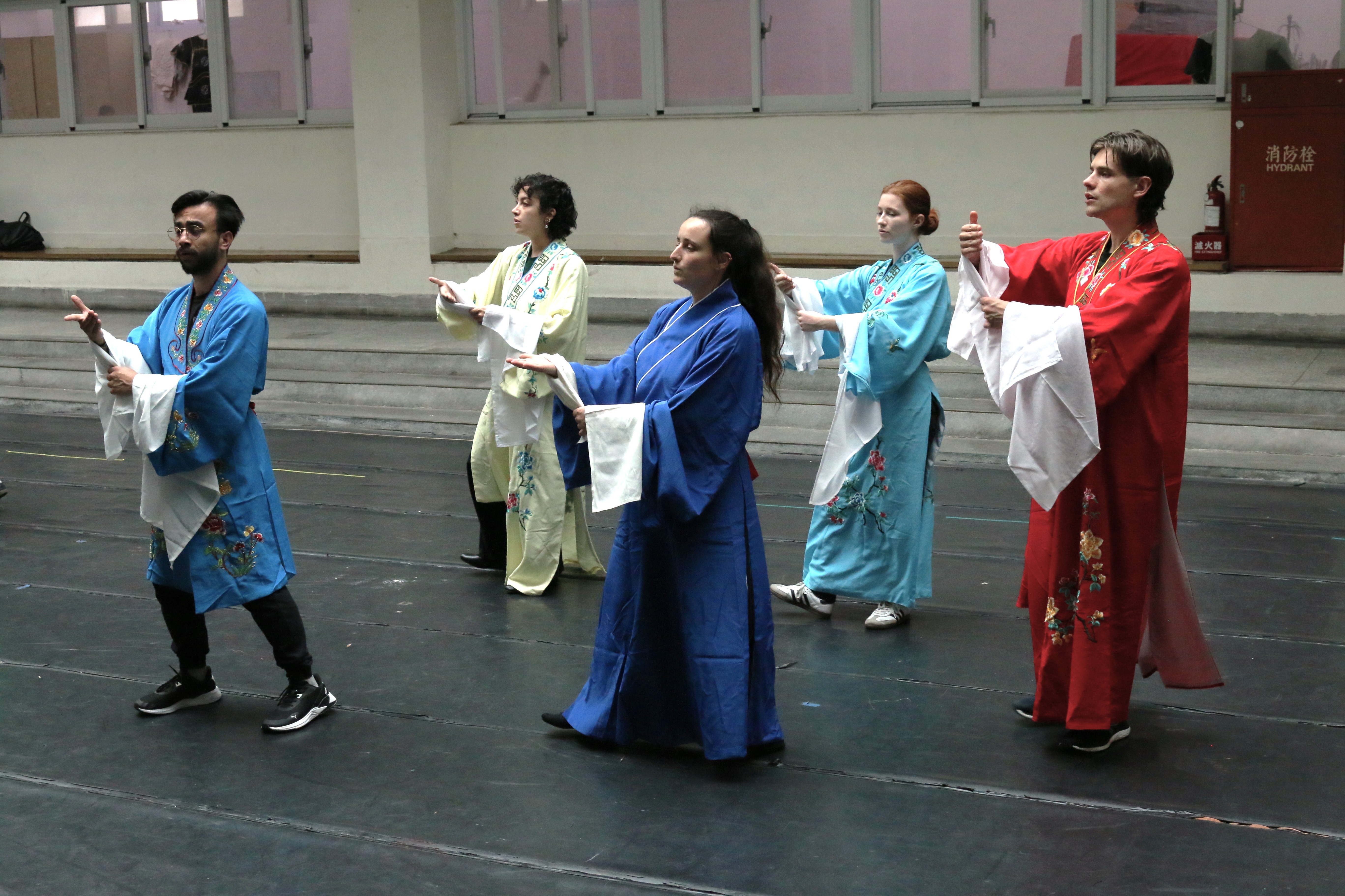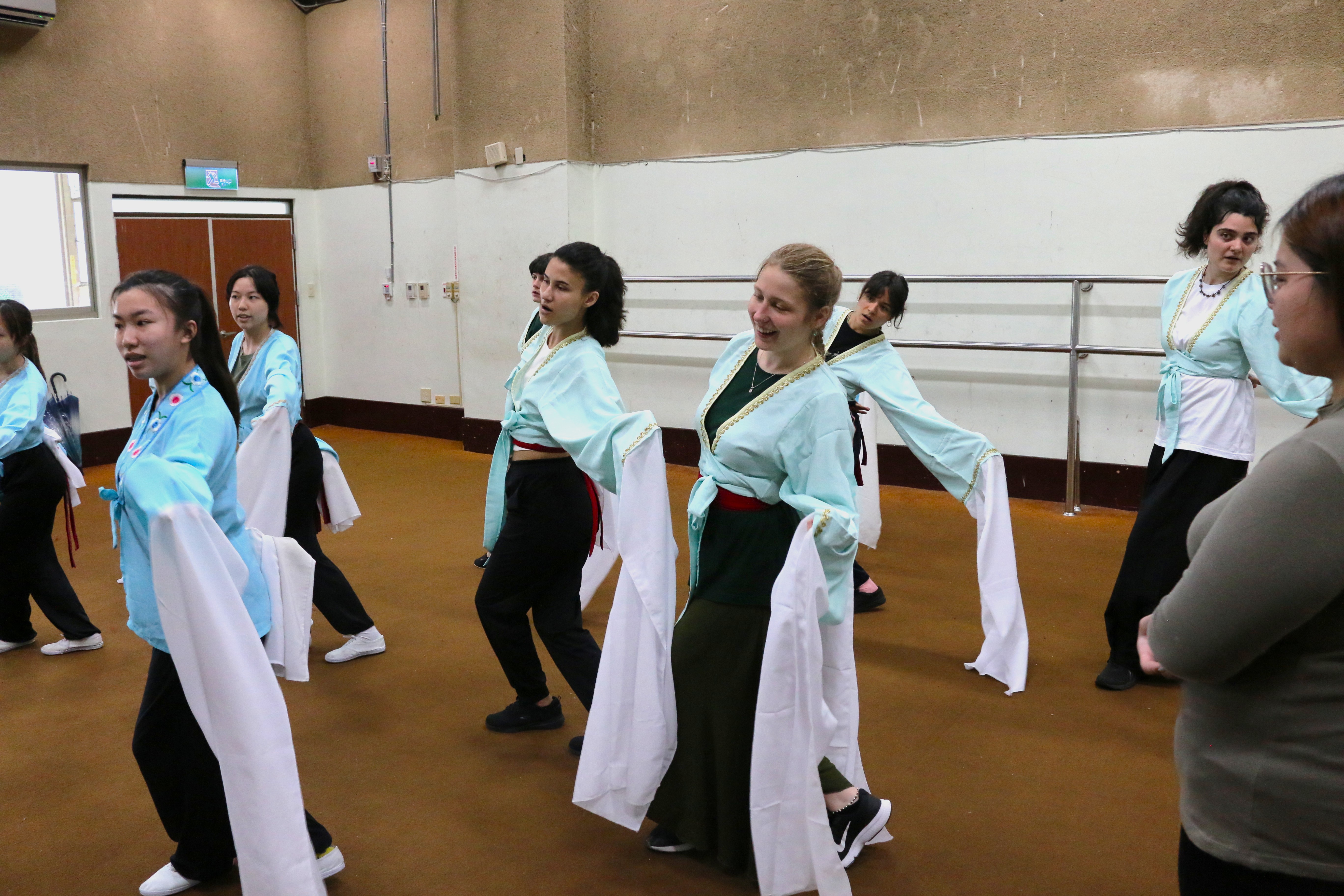 圖四十四說明:倒數第二天,法國學生已經較為習慣戲服上的水袖。