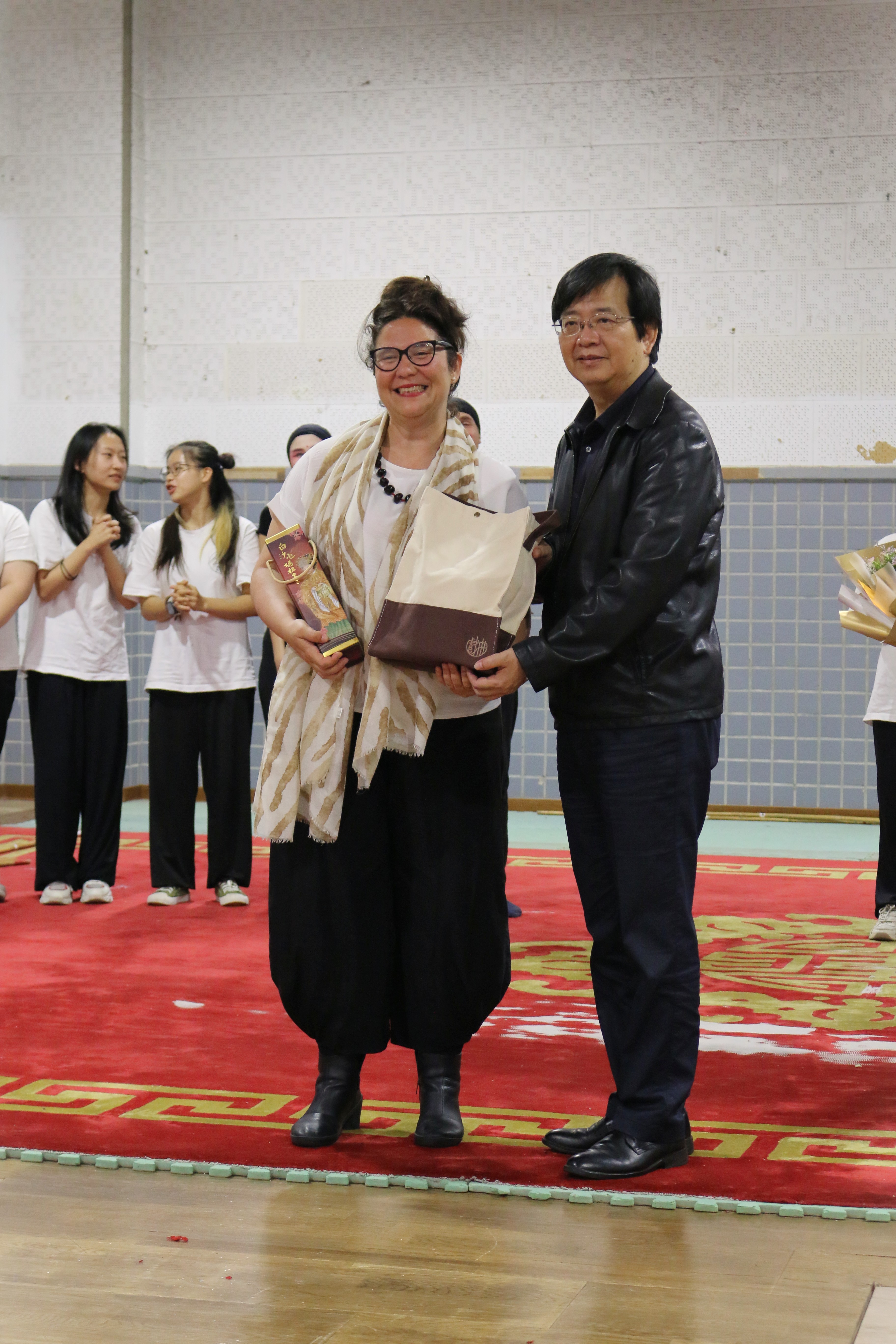 圖六十八說明:本校校長致贈禮物予副教授Giulia Filacanapa。