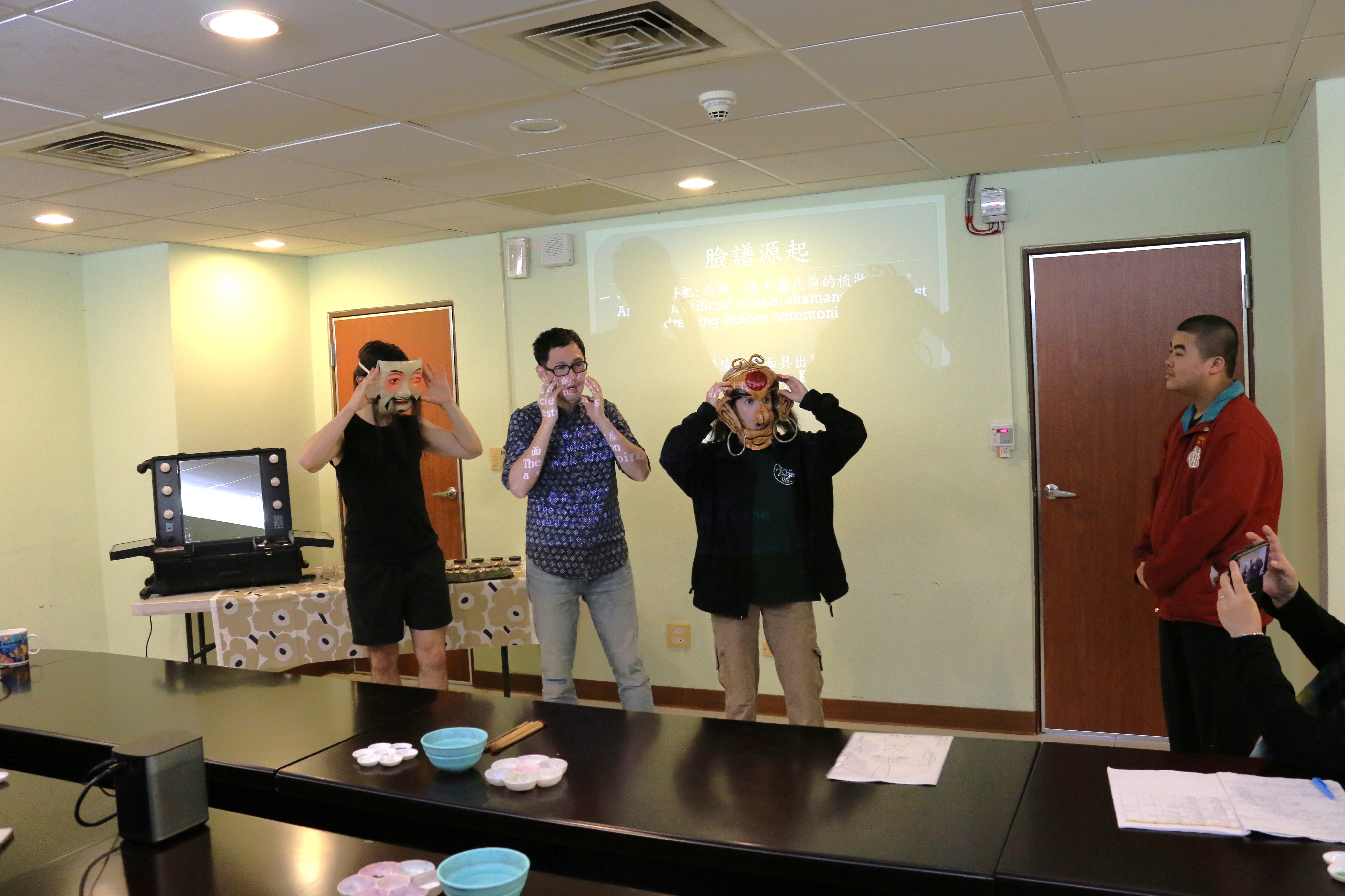 圖二十七說明:鄭農正老師示範京劇臉譜與面具。