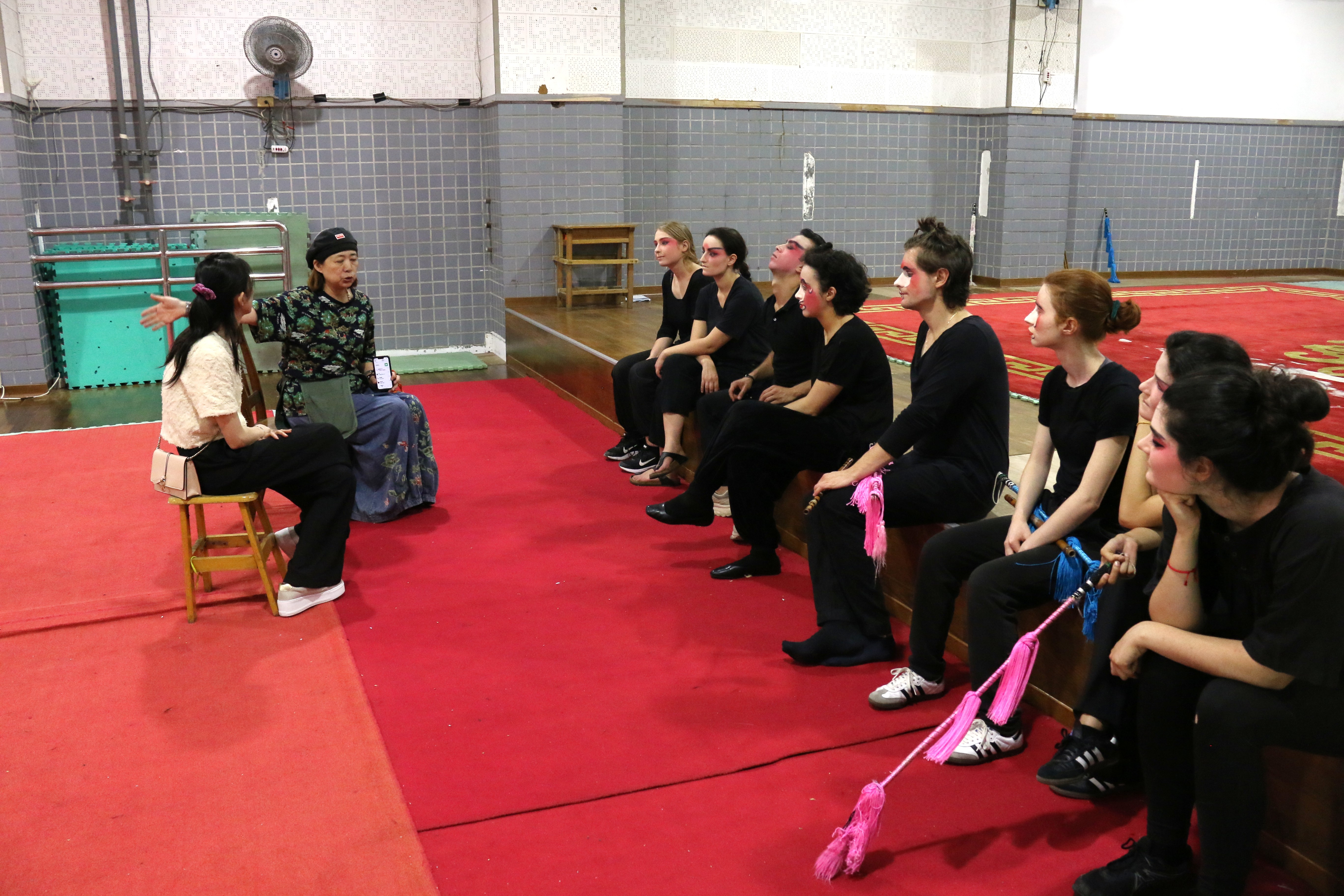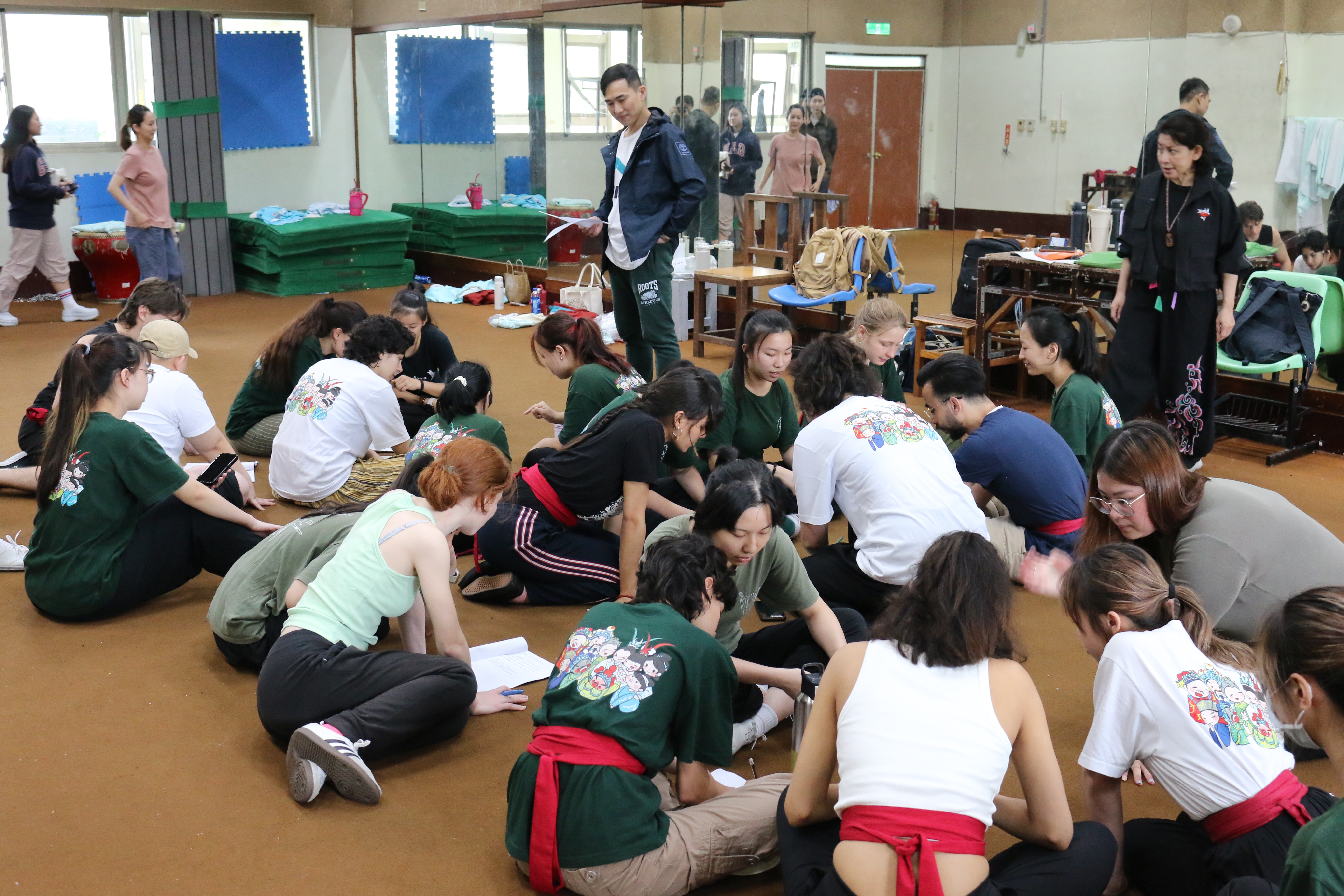 圖三十七說明:邱芳璇老師於休息時間提醒法國學生表演技巧。