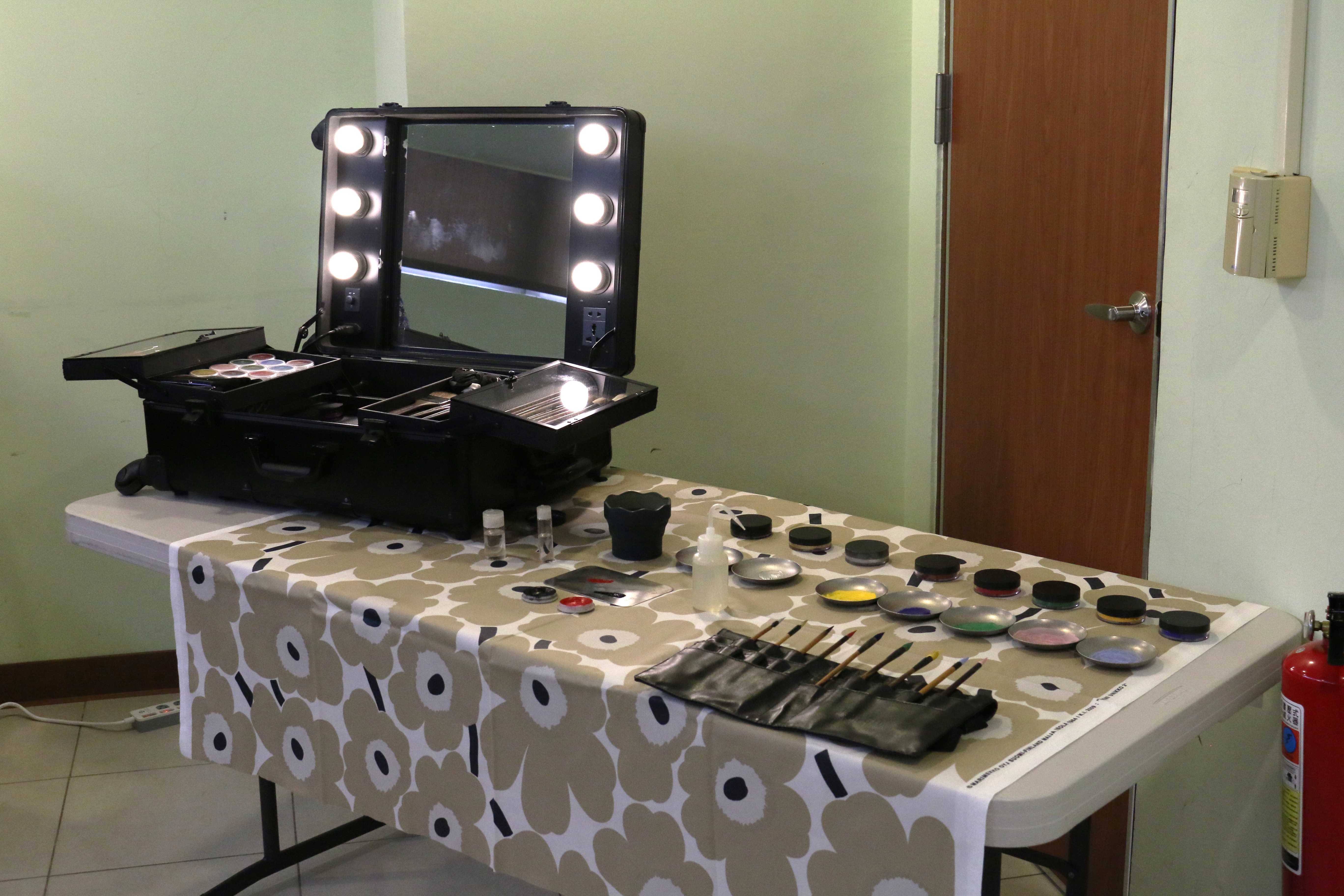 圖二十二說明:京劇化妝課,也參觀本校碧湖劇場後臺化妝間。