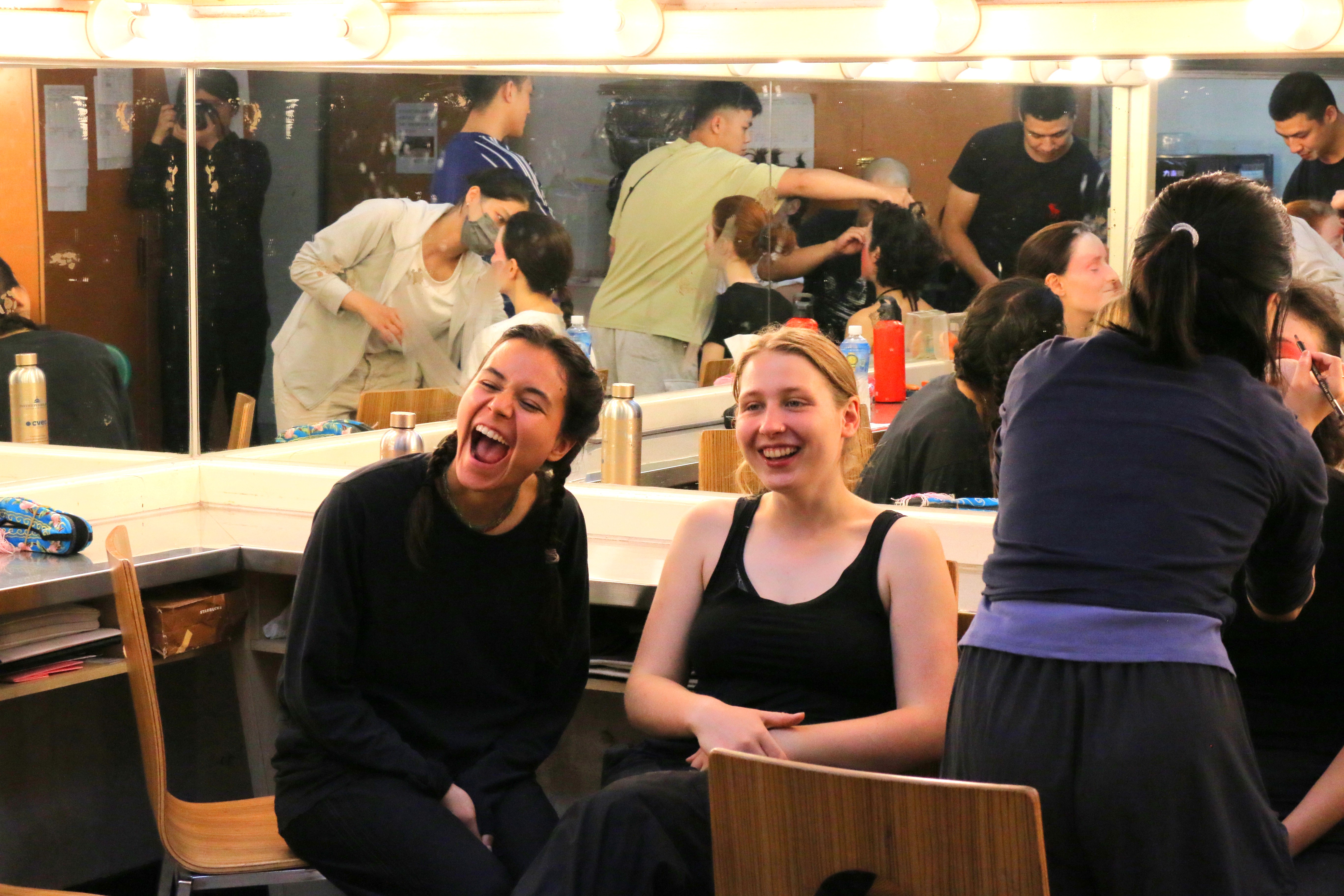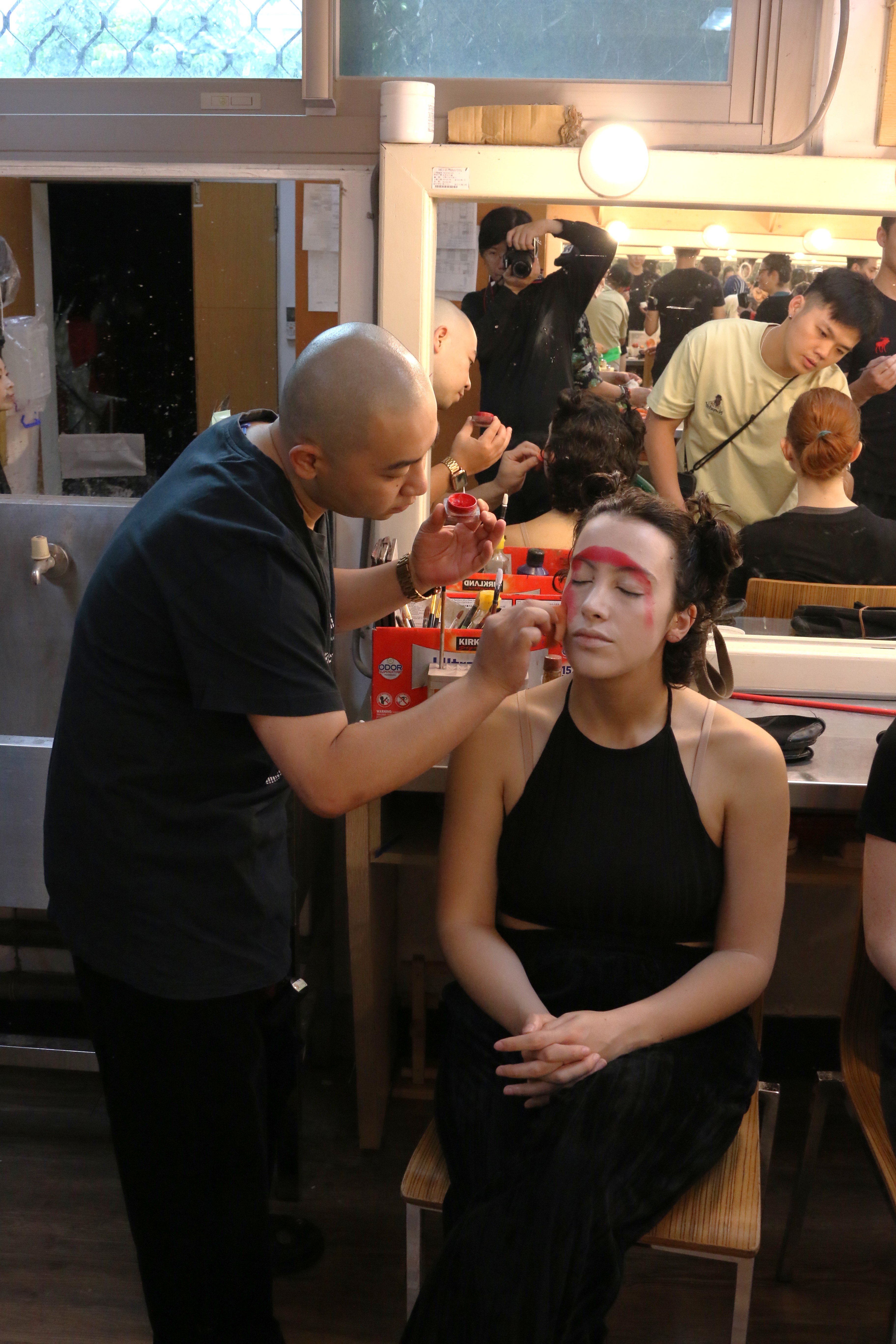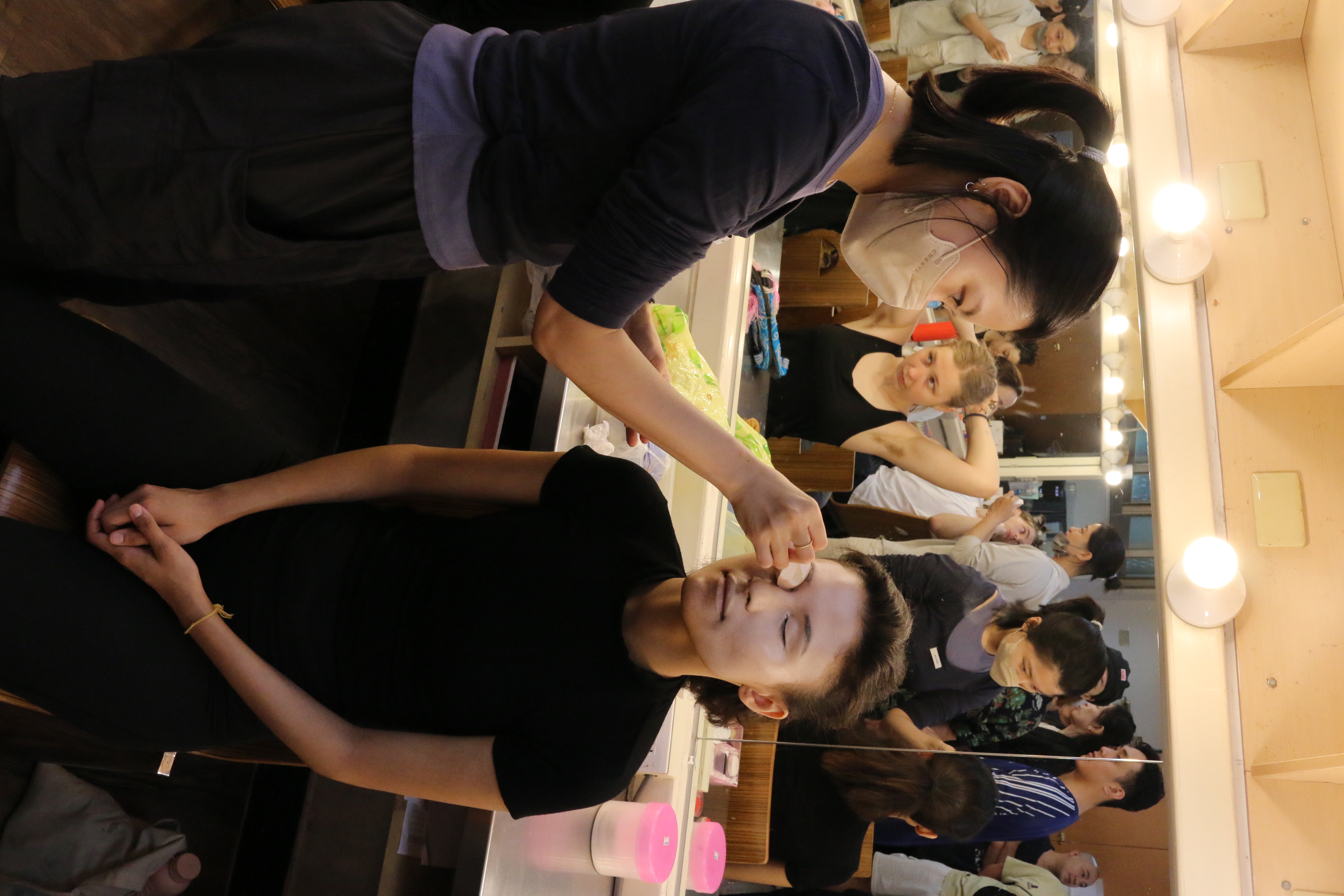 圖五十一說明:成果展演當天早上,京劇團協助法國學生化妝。