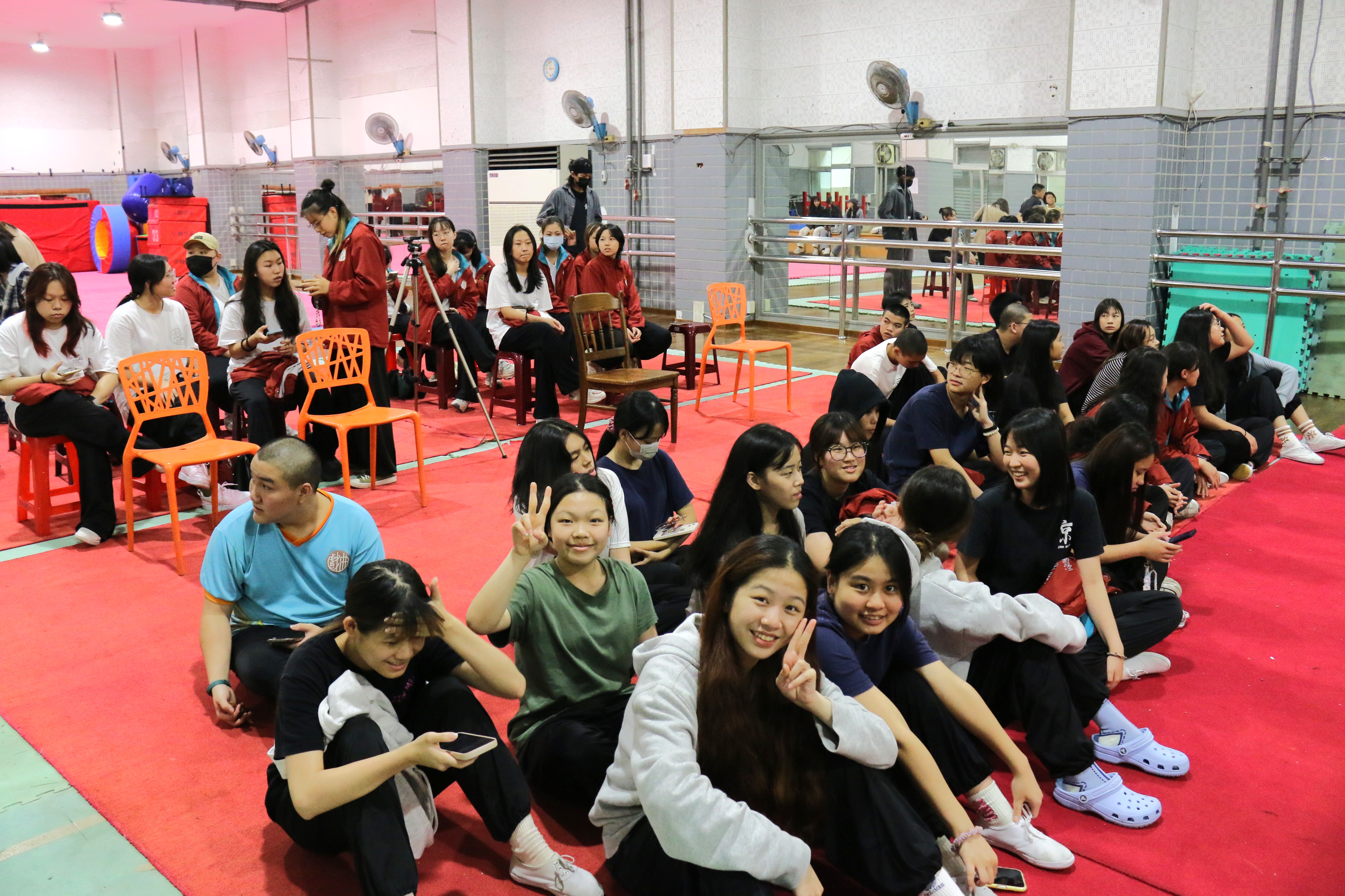 圖五十四說明:尚在等待的法國學生很興奮看到與平日不一樣的同學。