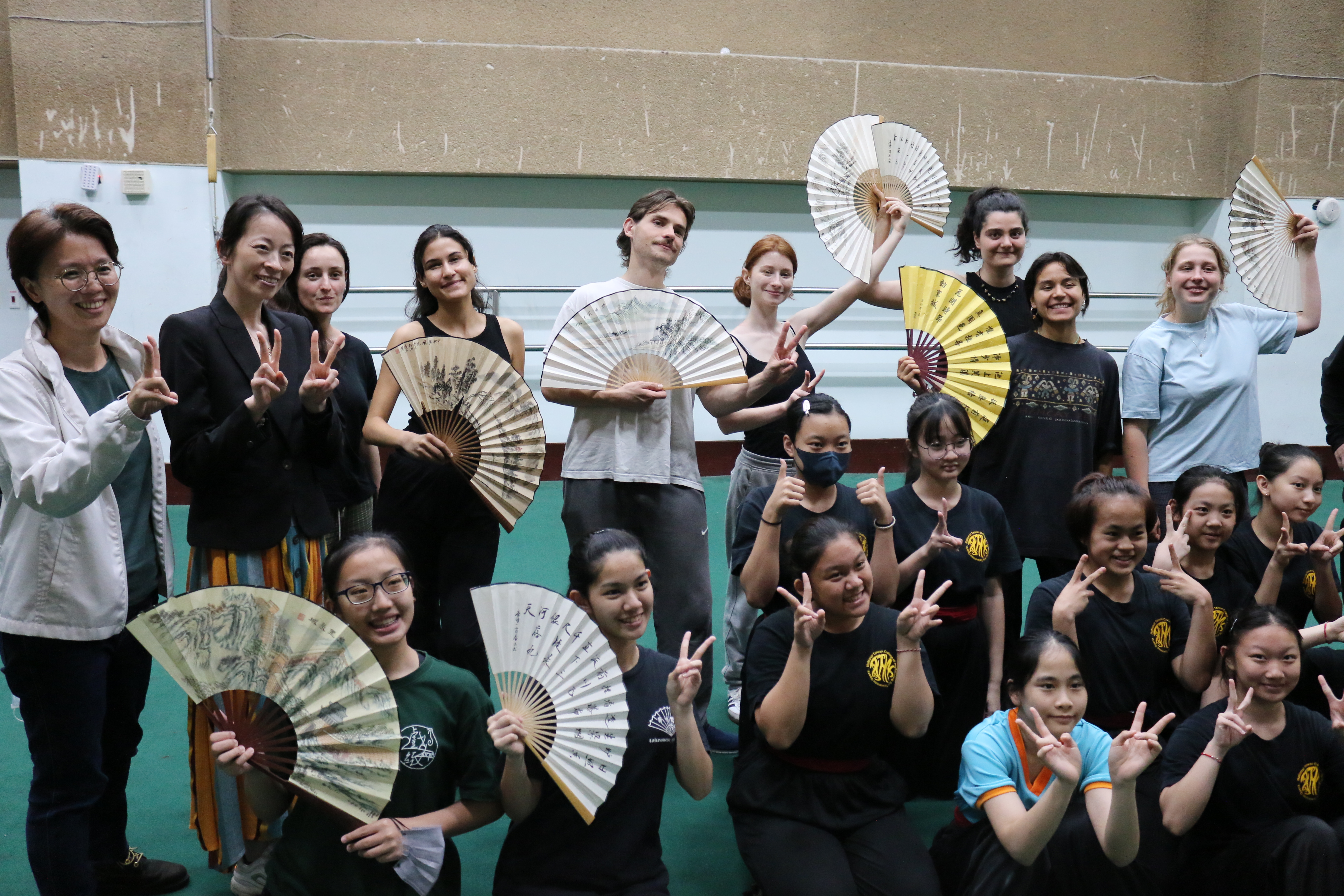 圖十二說明:法國學生學習扇子表演後,與歌仔戲學生合影。