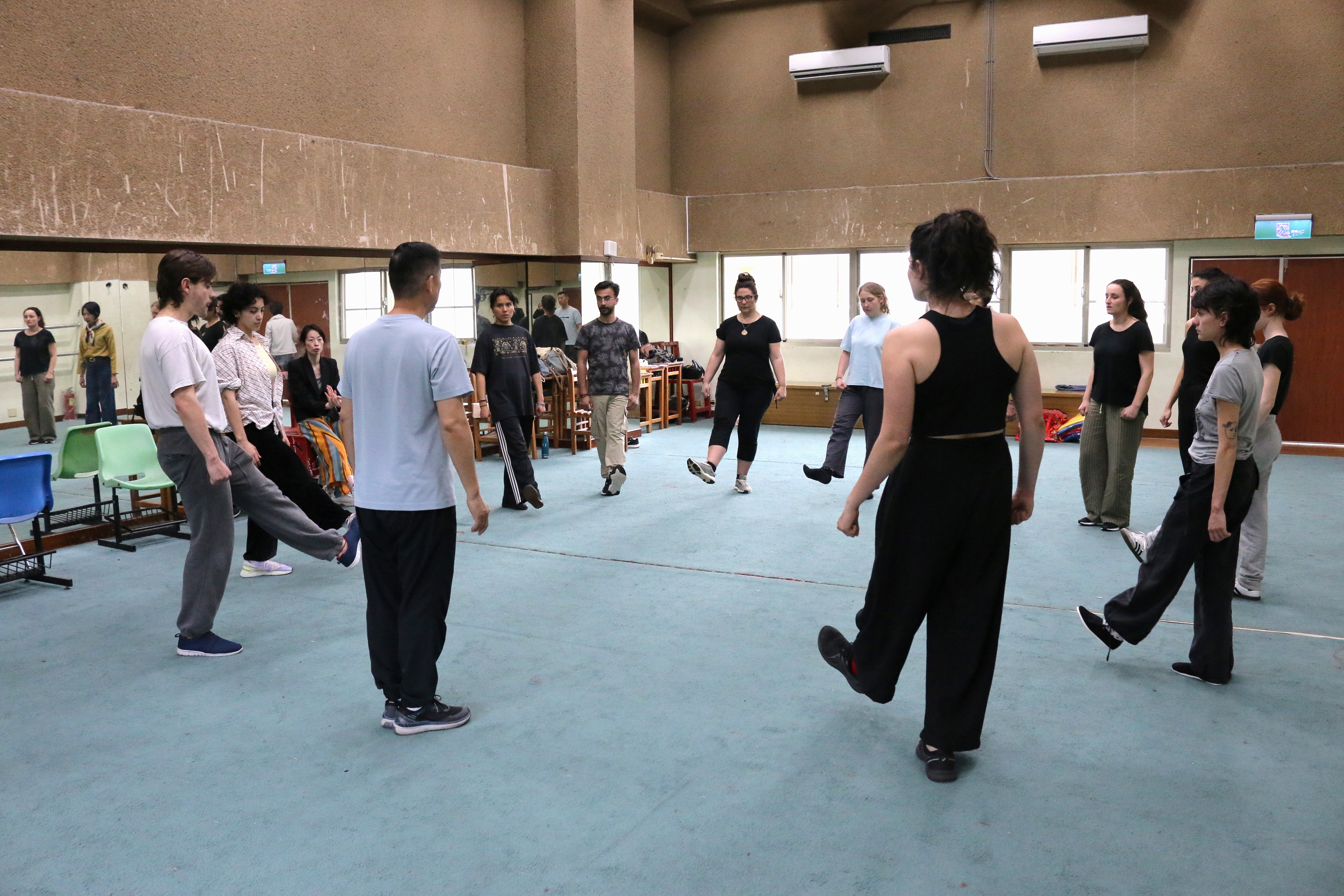 圖七說明:法國學生學習京劇表演基本步伐。