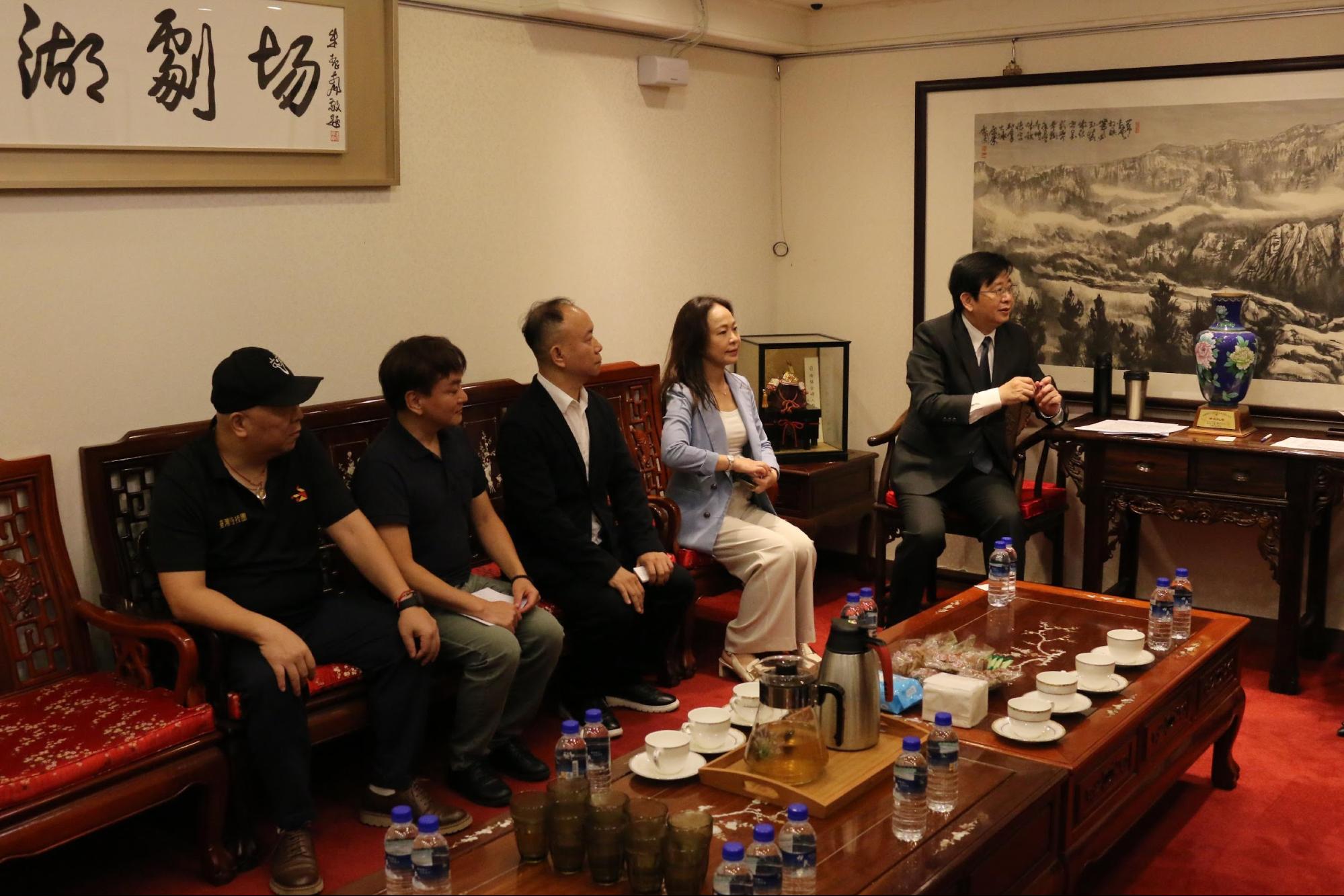圖八說明:本校校長與一級主管於貴賓室與中國戲曲學院交流教育理念,圖為本校長官們。