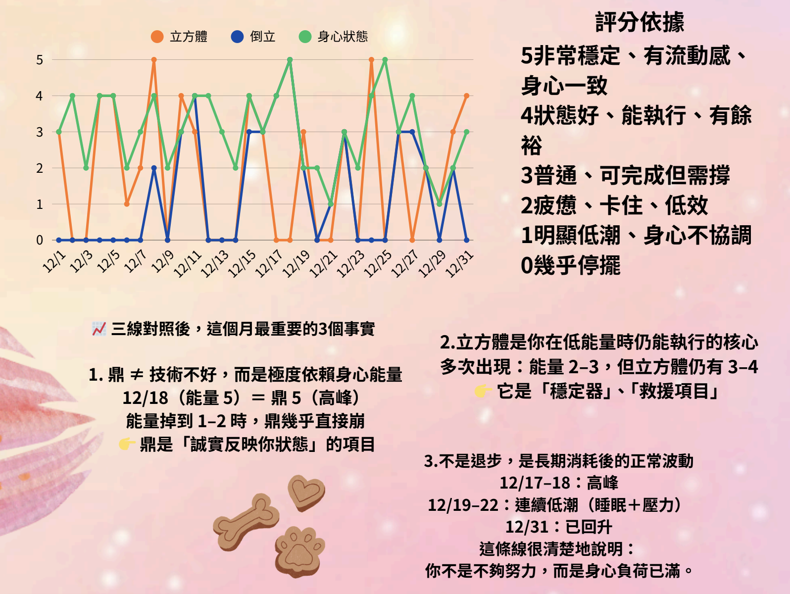 短結:透過書寫與記錄,相對多數的成員提及面對具象化與量化帶來的正面影響。進而檢視自己,並願意在「自我要求」的想法中提問與改進。仍然有少數成員逃避與過度簡化追查內容。
