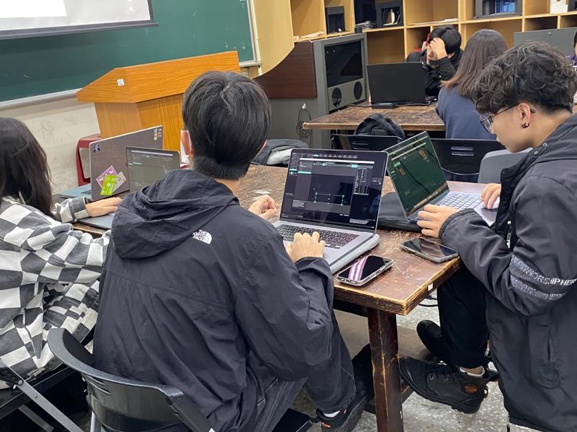呈上半學期以 Resolume Arena 為主要教學工具,著重於即時影像圖層結構、素材管理、影像混合、特效操作與輸出映射設定,並引導學生理解即時影像在舞台與展演環境中的應用方式,同時透過鍵盤與控制介面操作訓練即時反應能力。下半學期則導入 QLab,讓學生學習建立演出控制流程、Cue 架構設計、多媒體播放整合與系統同步控制,並透過實作練習模擬實際演出操作情境。整體教學以實機操作與問題導向學習為核心,強調系統理解、操作穩定度與跨媒體整合能力,使學生能逐步建立完整的數位影像控制觀念。