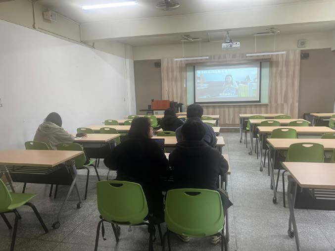 圖一說明:課堂觀看技職職安管理技術士考證介紹說明影片。
