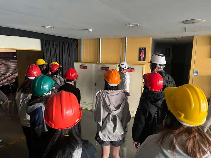 圖三說明:12/16參訪小巨蛋的流行音樂演唱會裝台現場。穿戴安全帽準備進入安裝現場。