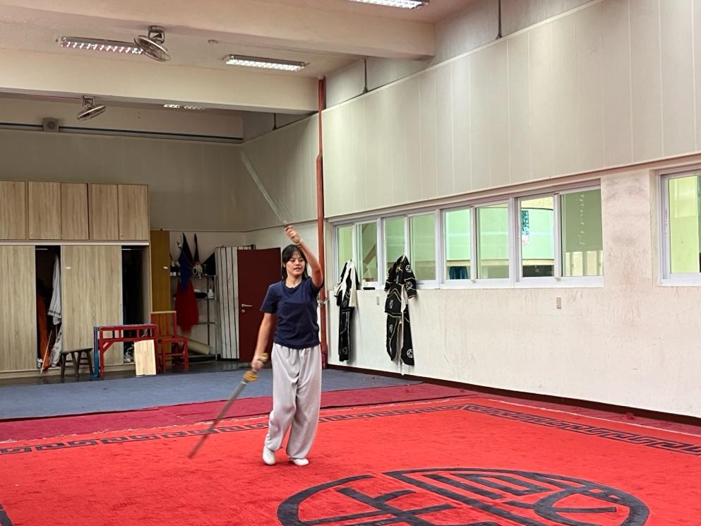 圖四說明:雙劍花加上腳步轉身技巧,考驗同學左右腳協調性。