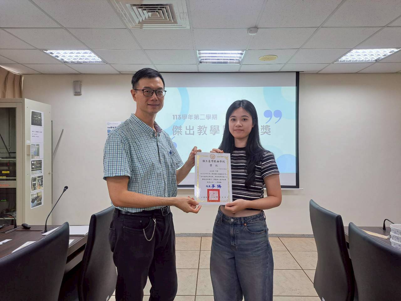 教學資源中心為鼓勵教學助理成長,自113學年第二學期起推動「傑出教學助理」獎勵,在12名取得教學助理證書的同學中,遴選出5名獲頒傑出教學助理。