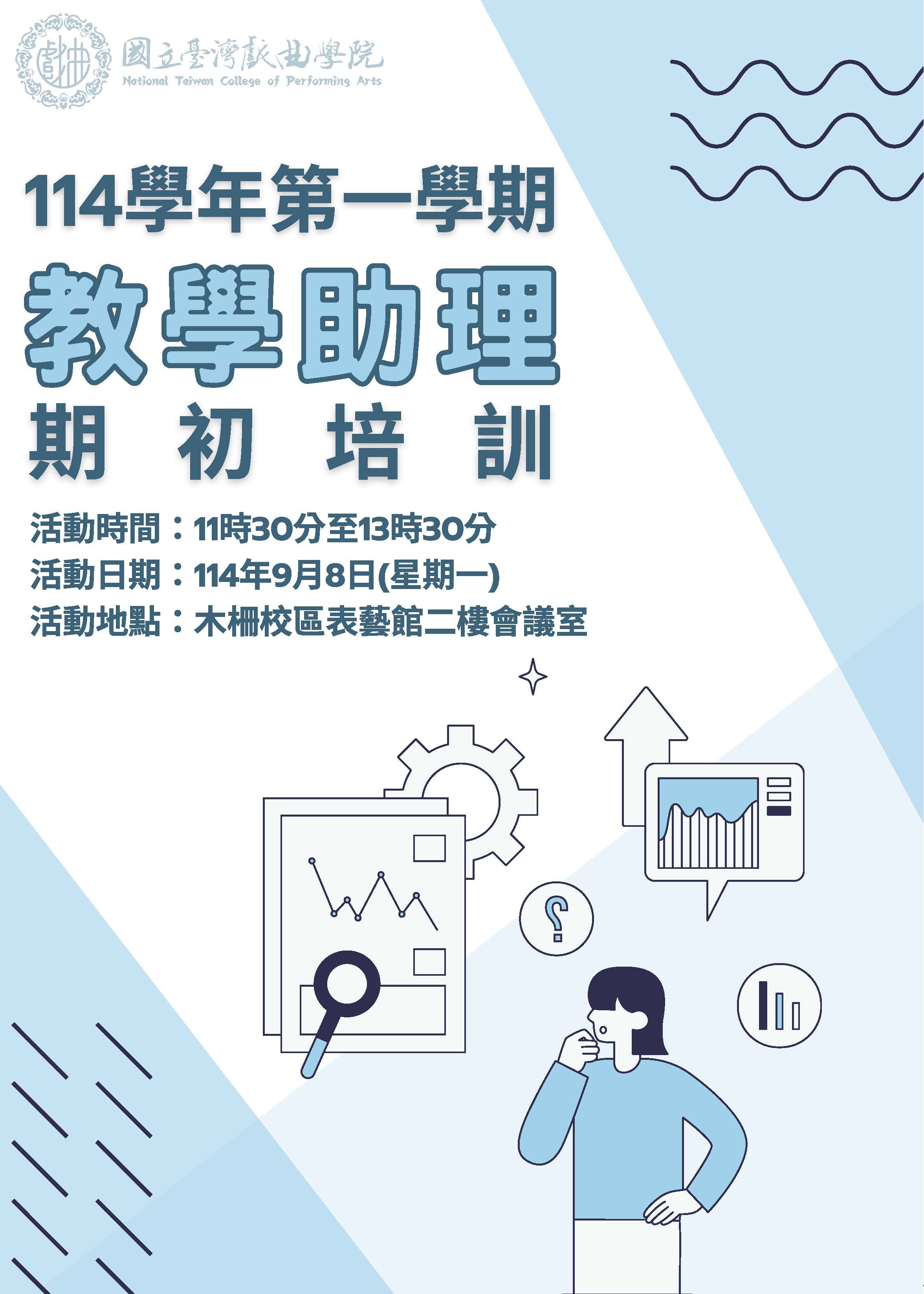 本學期教學助理共收申請案20件,包含京劇學系4件、民俗技藝學系3件、戲曲音樂學系3件、歌仔戲學系2件、劇場藝術學系4件、客家戲學系2件、通識中心2件。於114年7月16日「教學助理審查會議」經教學助理審查委員討論,本學期教學助理申請案共通過15件。