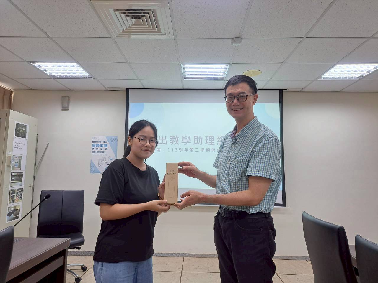 圖二說明:教學資源中心林世連主任頒發113學年第二學期傑出教學助理獎狀,本項獎勵自113學年第二學期開始辦理。