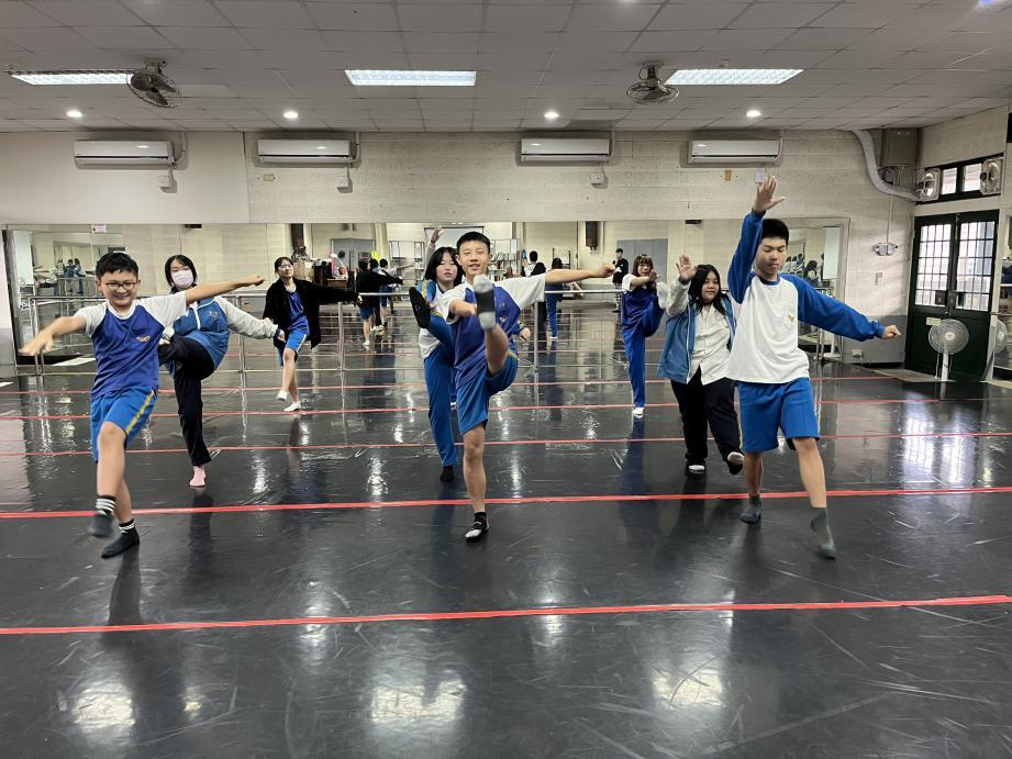 2.訓練學生的肢體及協調性,教學過程中先深入介紹了戲曲基本功、把子功、 毯子功、等三功主要練習的模式,主要以基本功來教學,體驗基本功的壓腿、踢腿、單站子、你、我、他、山膀手、雲手等肢體動作。學生在學習的過程中,非常活潑及踴躍表現,甚至遇到肢體不協調也努力學習,去突破自己,帶著歡笑去學習。